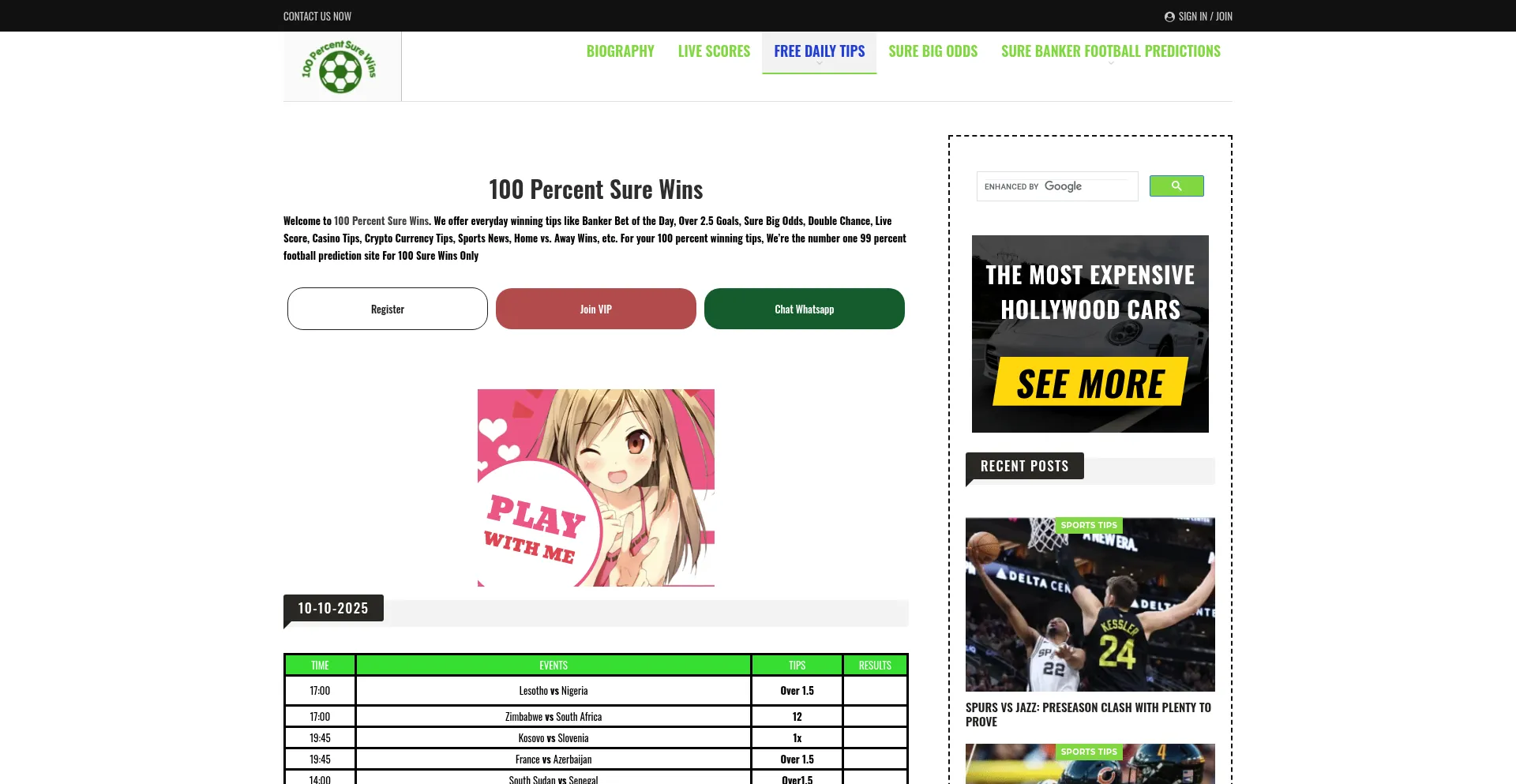 100percentsurewins is the No.1 best prediction site in the world for 100 sure wins football predictions for today, tomorrow, and the Weekend.