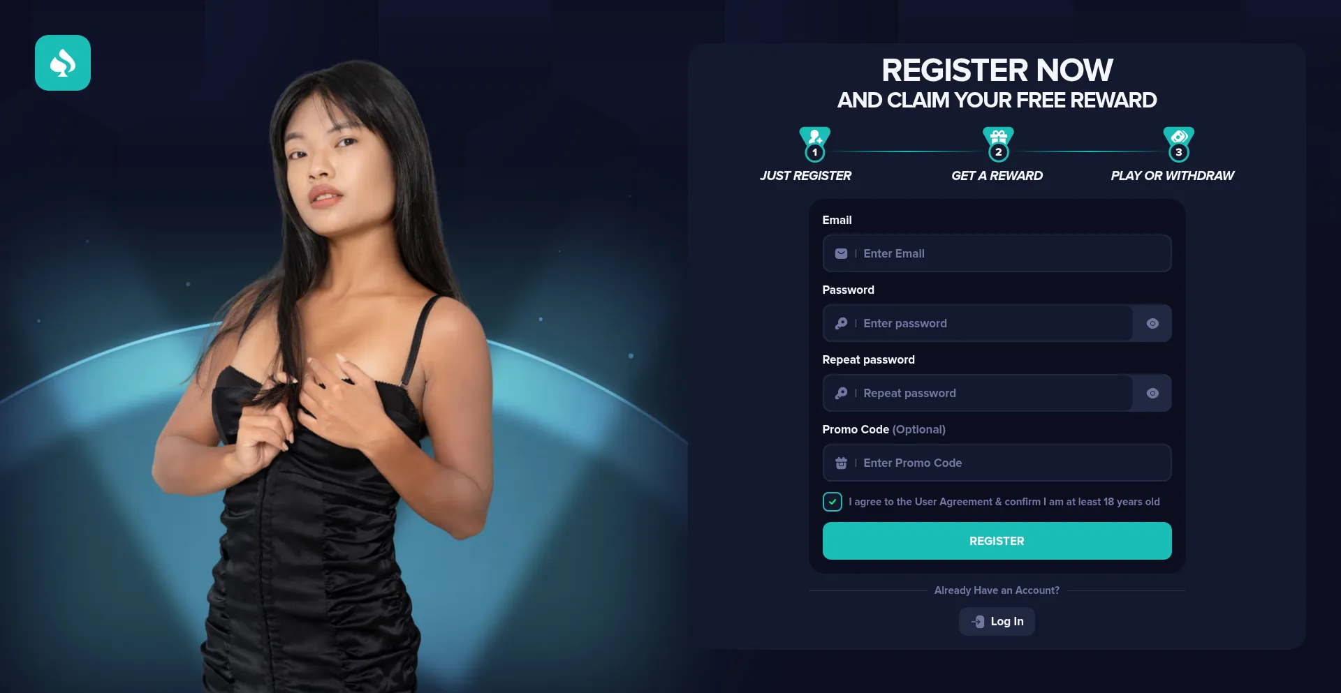 18+, Cryptocurrency, Registration Form, Casino, Cloudflare Browser Insights, Facebook Integration, Young Domain