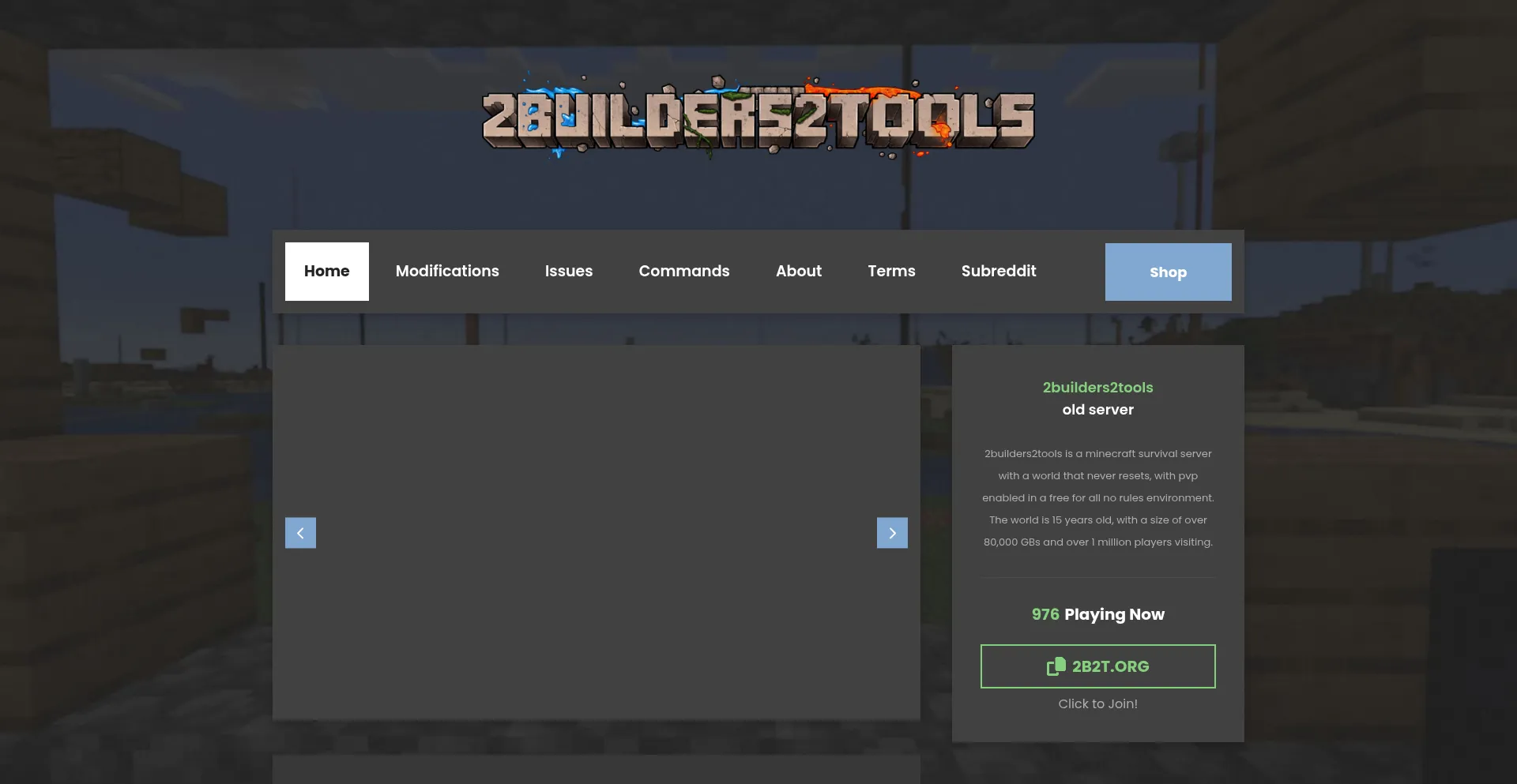 2builders2tools is a minecraft survival server with a world that never resets, with pvp enabled in a free for all environment. Also known as "The oldest anarchy server in Minecr...