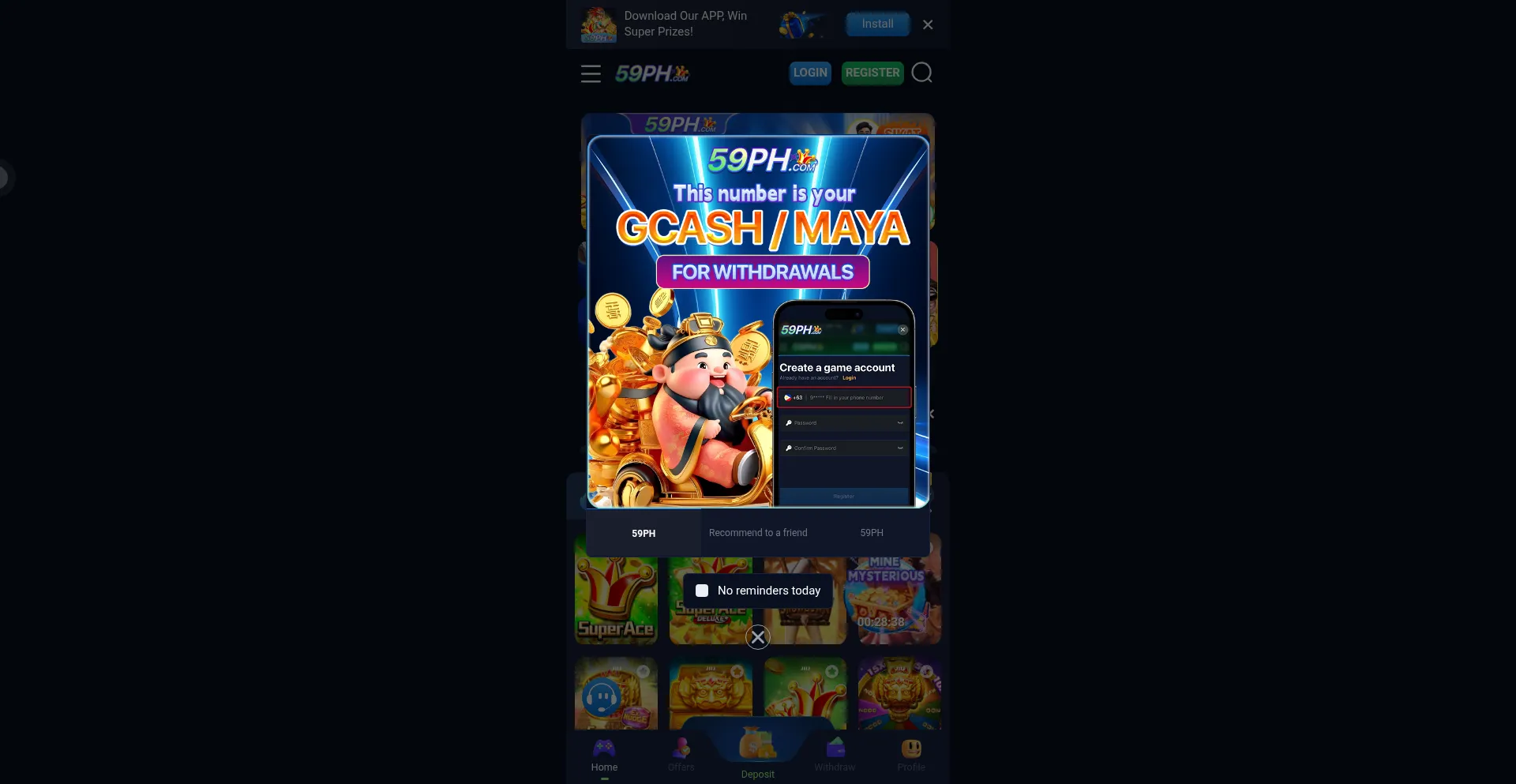 Sign up on 59PH now After registration, claim daily bonuses up to ₱9,999 — with instant deposits and withdrawals!