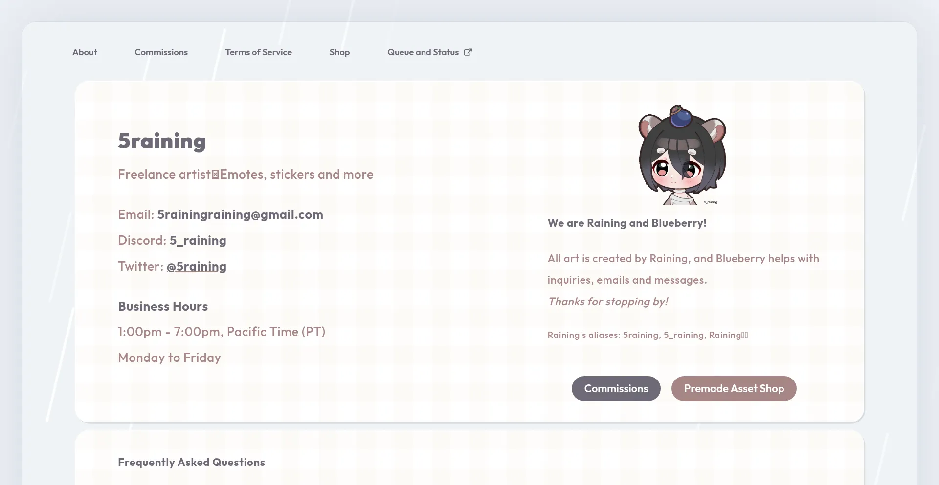 5raining is a sticker/emote artist with YCH emote bases. Custom animated and static emotes also available. Aliases: Raining, 5_raining, Raining例雹