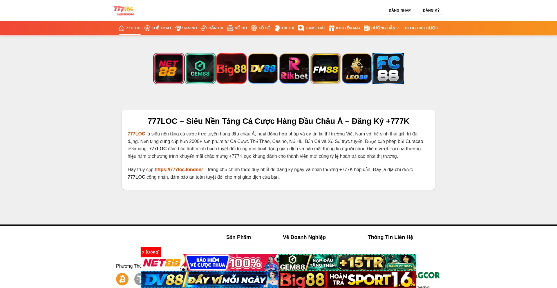 777LOC – SiĂȘu Nền TáșŁng CĂĄ CÆ°á»Łc HĂ ng Đáș§u ChĂąu Á - Đăng KĂœ +777K