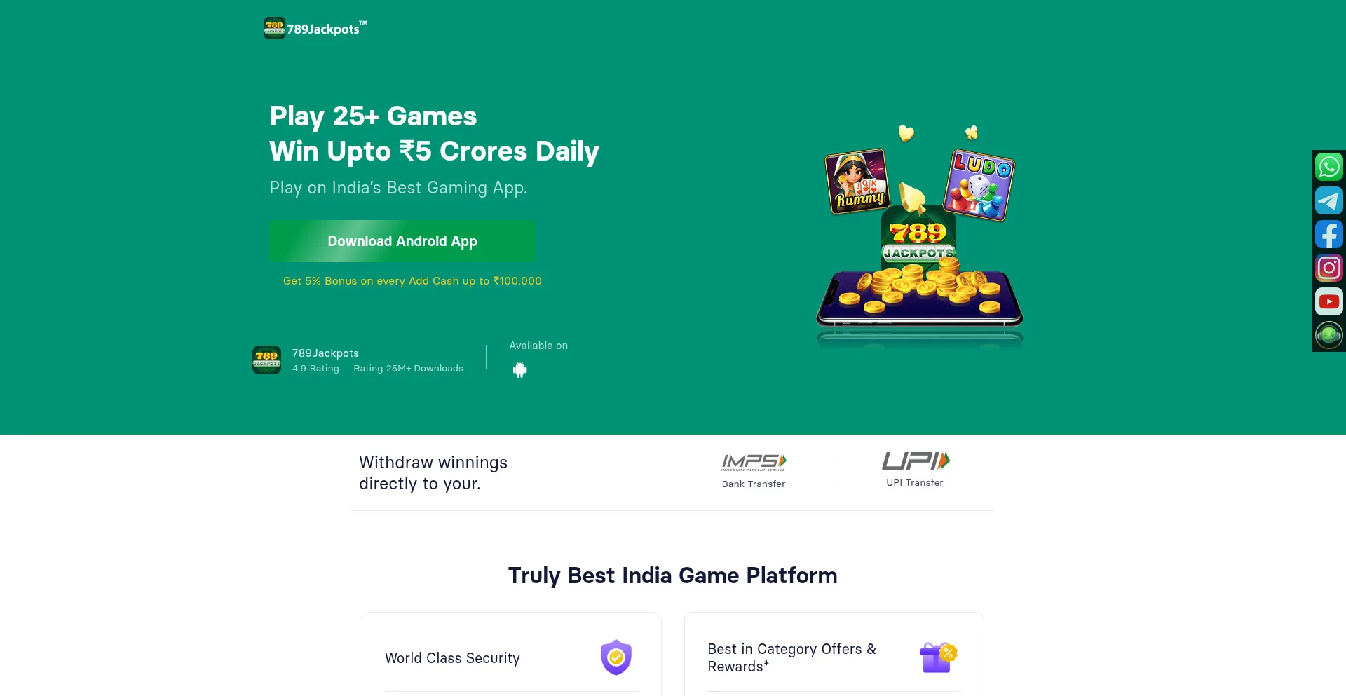 Welcome to 789Jackpots ! Dive into a world of thrilling games like slots, Rummy, Teenpatti, Aviator, and more. As India's premier online gaming platform, we offer a wide selecti...