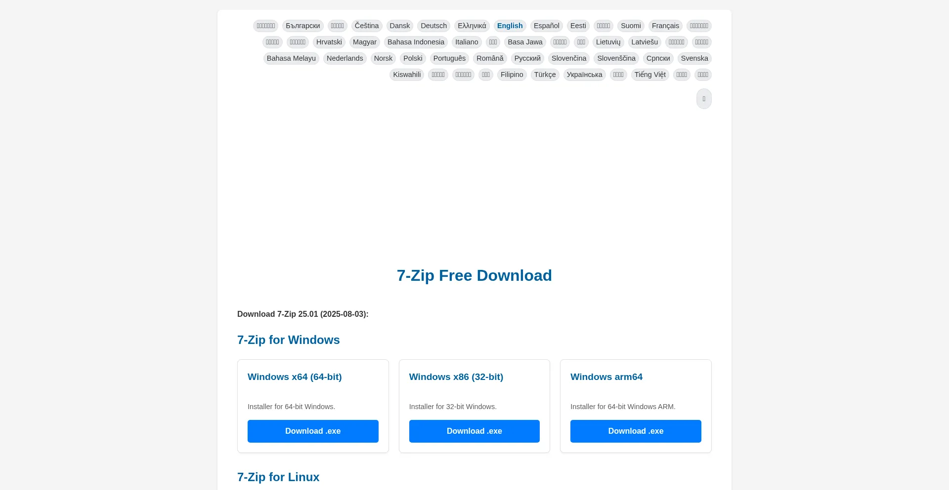 Download the latest version of 7-Zip for Windows (64-bit, 32-bit, ARM64), Linux, and macOS. Safe, official, and fast downloads.