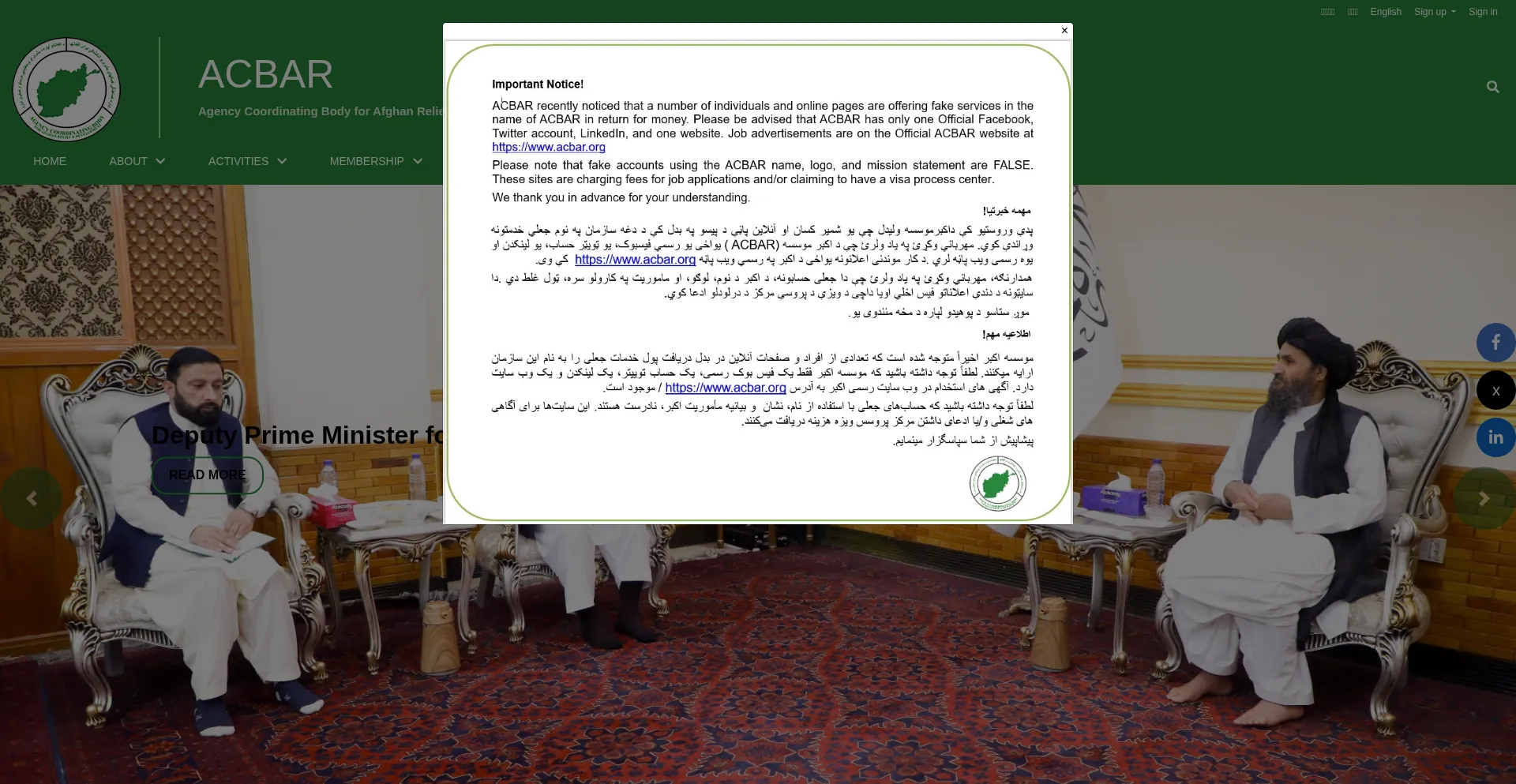 La présence de liens de médias sociaux sur le site web indique que acbar.org maintient des comptes officiels sur les médias sociaux, ce qui est un signe positif de crédibilité et d'engagement.
