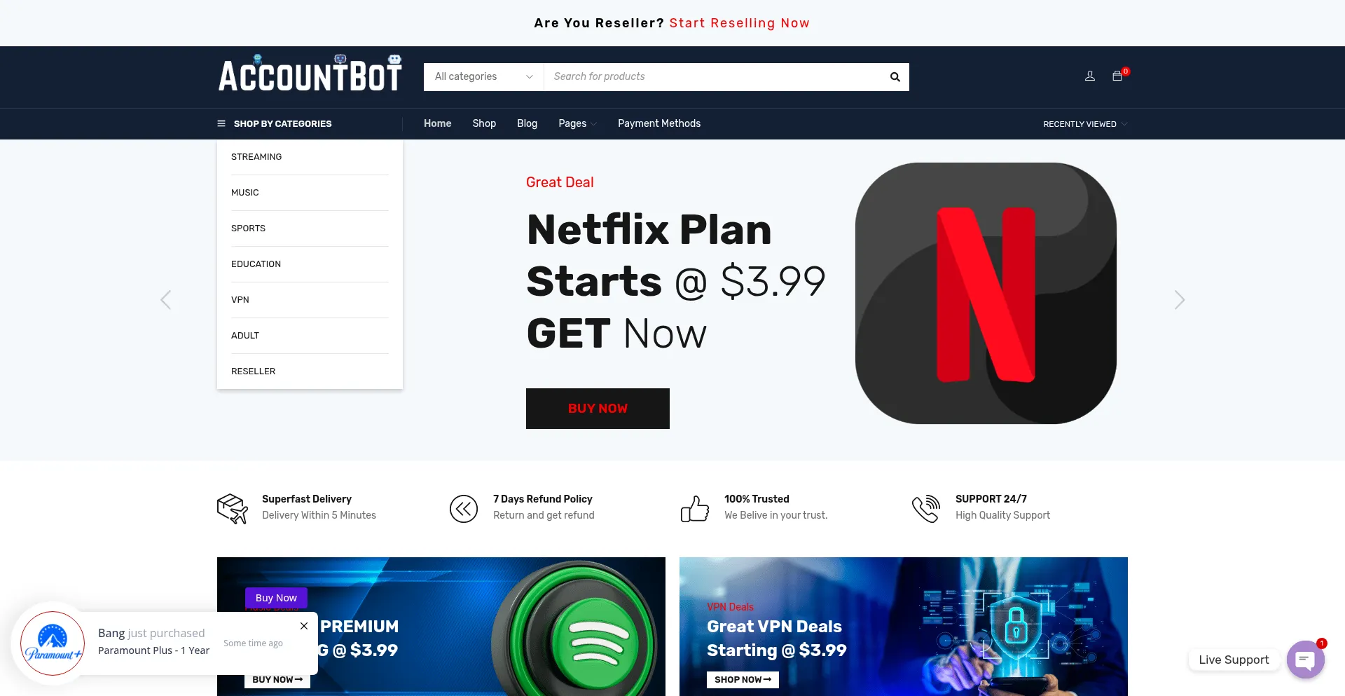 L'analyse indique que accountbot.net fonctionne comme une plateforme de commerce électronique facilitant les transactions en ligne pour des biens ou services. Le site web implémente une fonctionnalité de panier d'achat, des systÚmes de traitement des paiements et des caractéristiques de catalogue de produits typiques des opérations commerciales de détail.