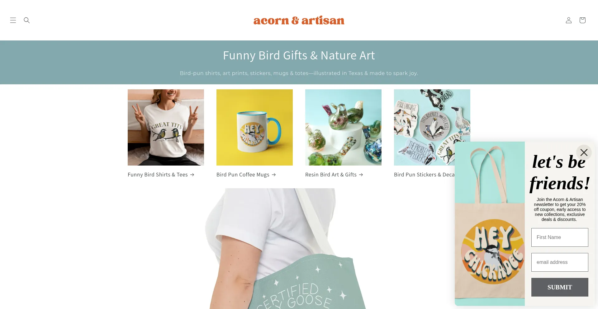Discover Acorn & Artisan: your go-to for nature-inspired lifestyle products, including playful graphic tees, vibrant suncatchers, and whimsical home accents. Transform your spac...