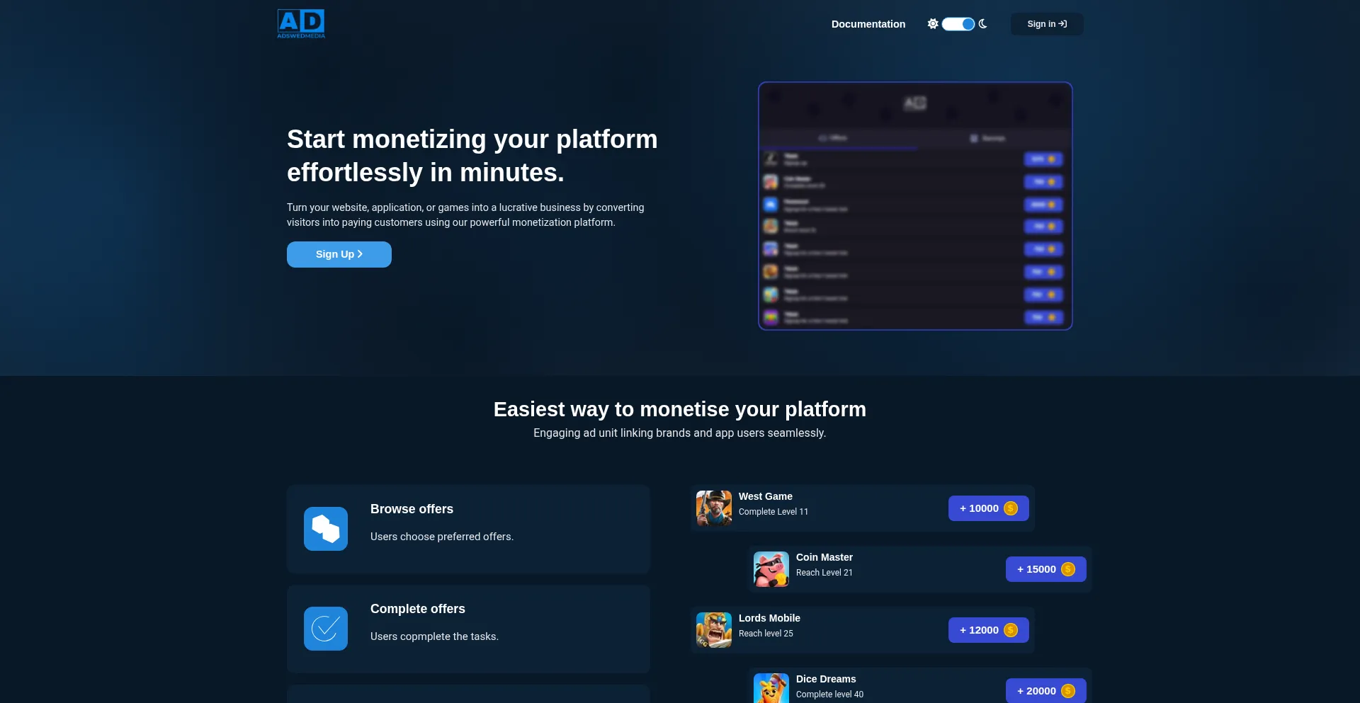 AdswedMedia - Monetize your website with our simple offerwall Connect your users with brands they love. They share their opinion and get rewarded in your prefferd app currency.