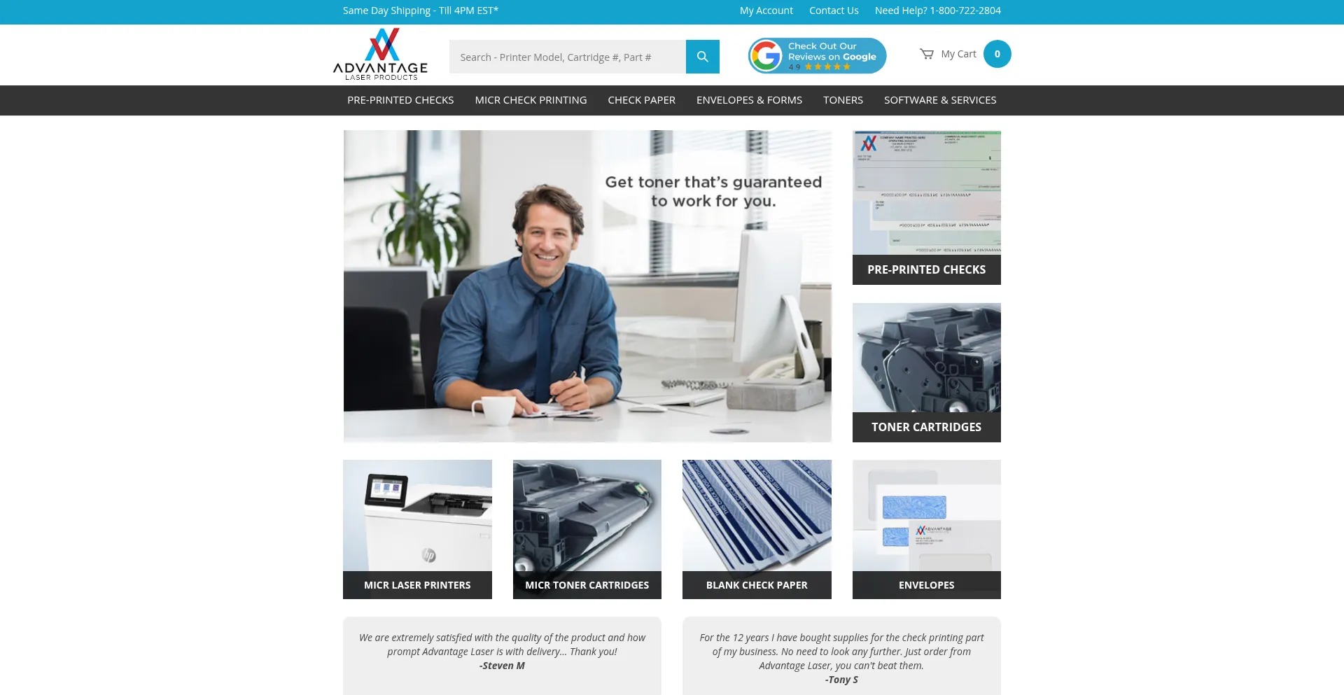 MICR Check Printing Supplies, Toner Cartridges & Recycling Company | Advantage Laser Products