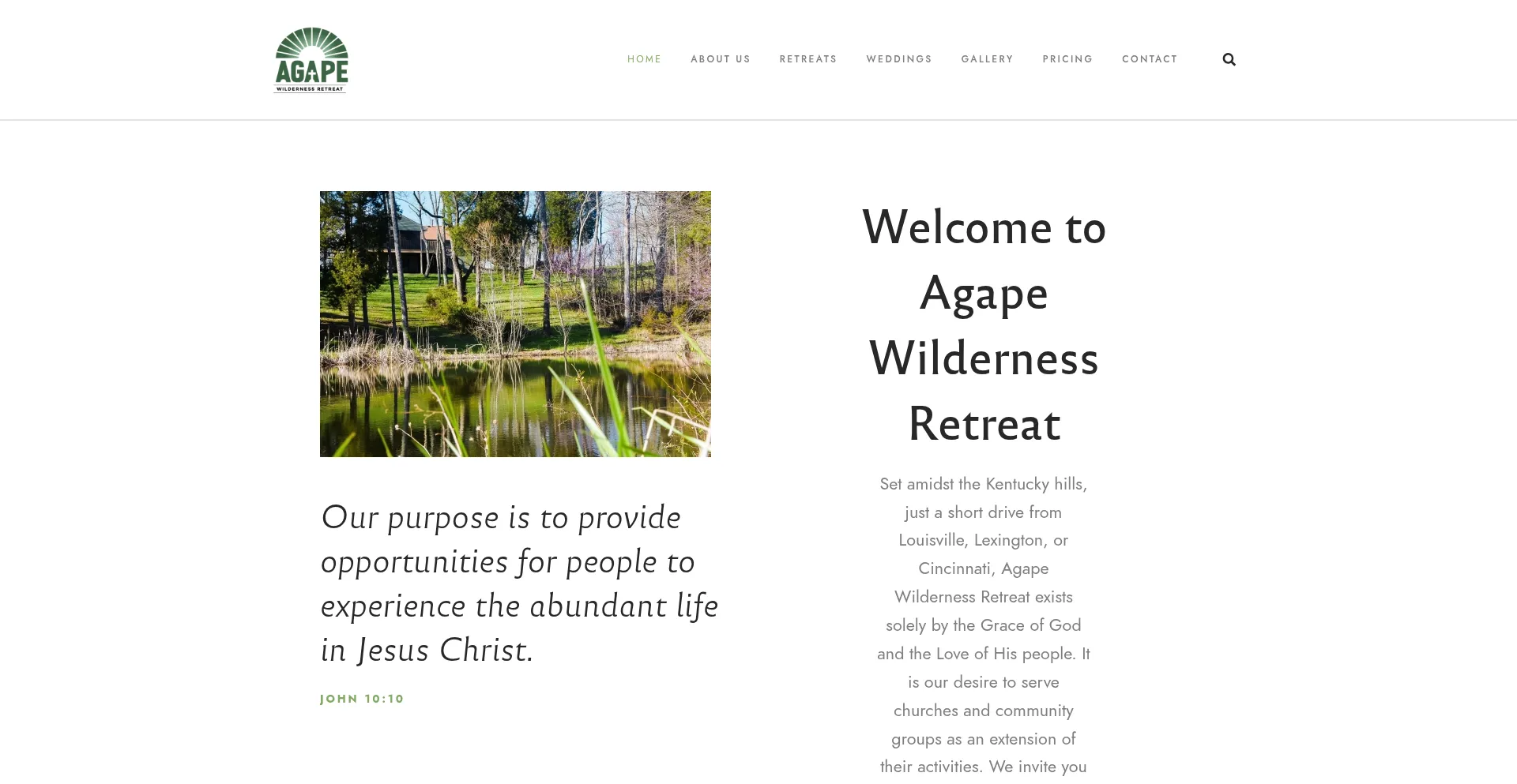 Set amidst the Kentucky hills, just a short drive from Louisville, Lexington, or Cincinnati, Agape Wilderness Retreat exists solely by the Grace of God and the Love of His people.