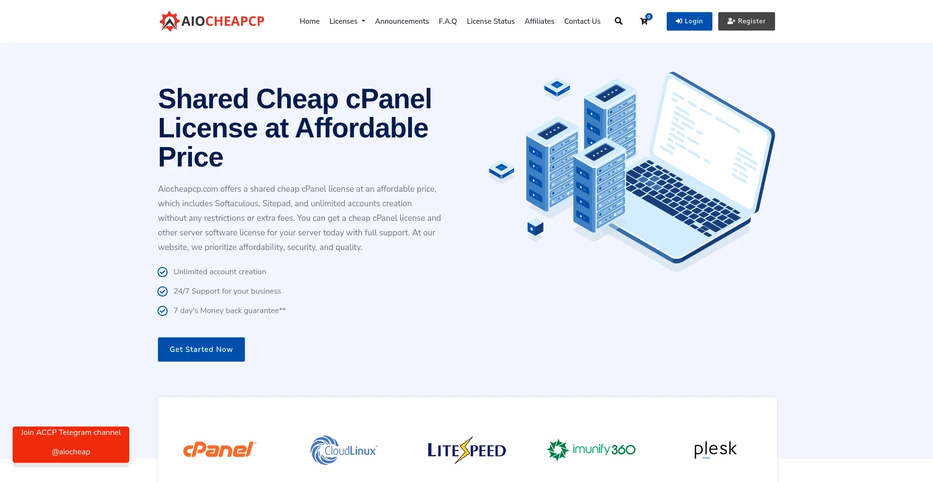 Aiocheapcp.com sell cheap cpanel license ,LiteSpeed ,CloudLinux ,Directadmin ,Virtualizor with 7 days money back guarantee