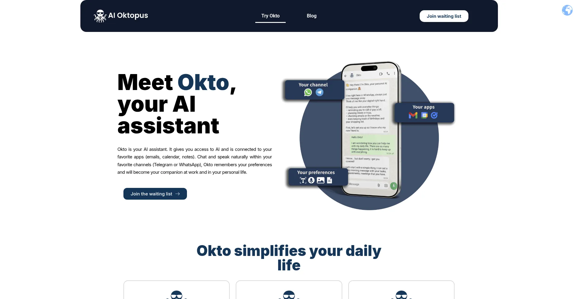 Okto – Your Personal AI Assistant for Everyday Life. Chat with Okto, your AI assistant that organizes tasks, emails, and calendar. Manage your life and work easily through Wha...
