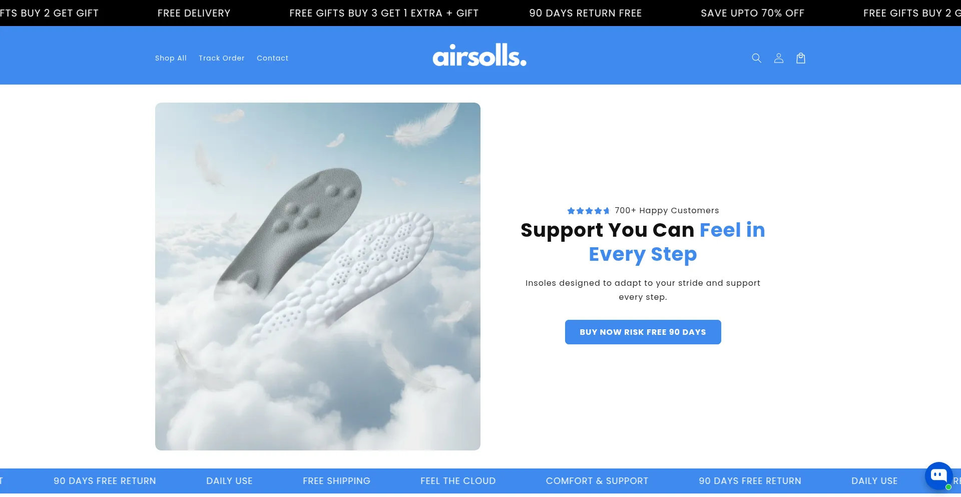 Discover AirSolls insoles with AirCloudℱ technology. Trim to fit, designed for all-day comfort, and backed by a 90-day satisfaction guarantee.