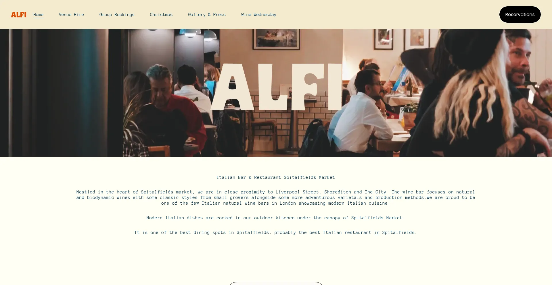 ALFI is an Italian bar and restaurant in Spitalfields, London. Serving organic and natural wines, craft beers, & cocktails alongside an all-day menu.