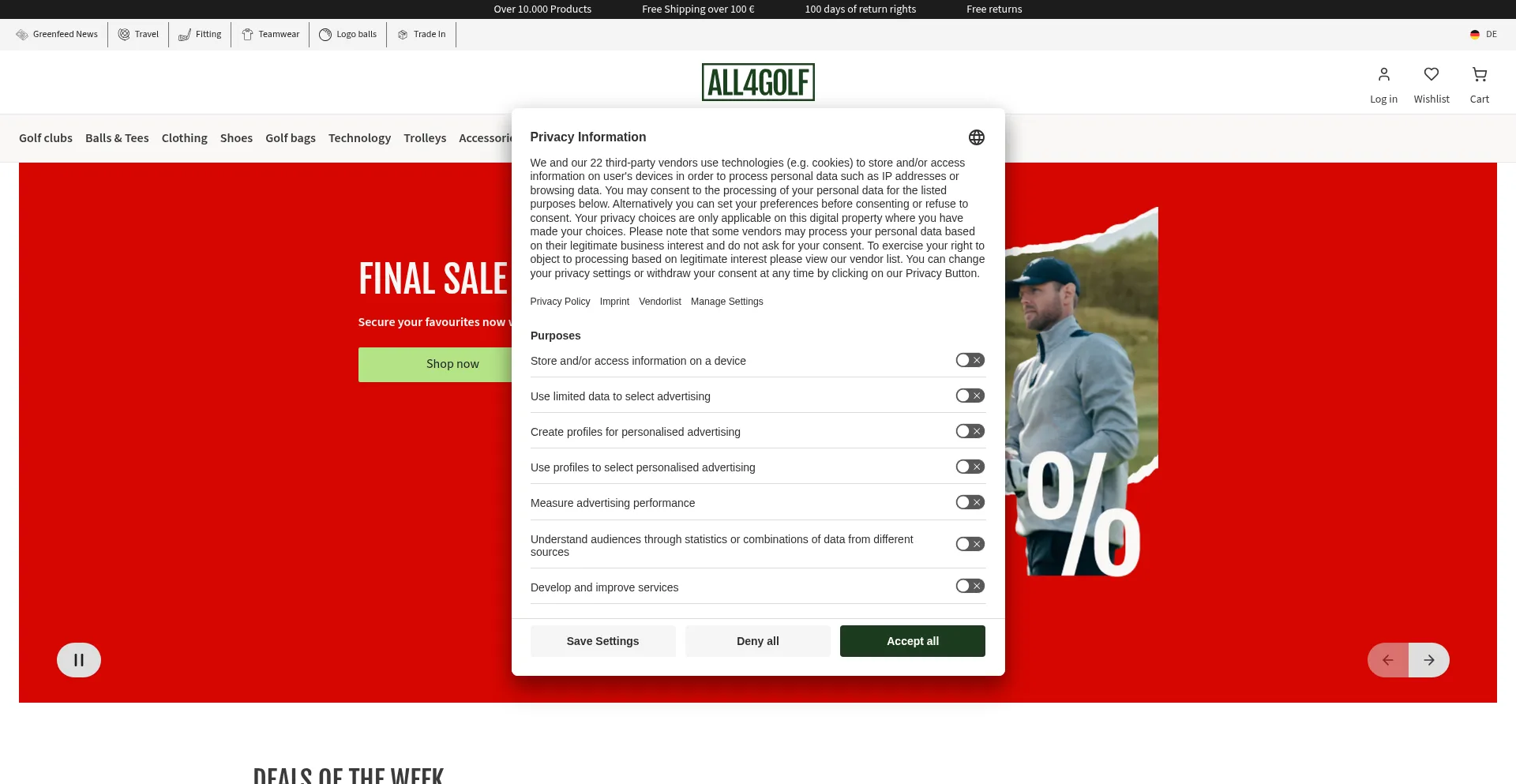 The All4Golf Golf Shop: > 10.000 Products ✔ Best Prices ✔ All Major Brands ✔ Direct Shipping ✔ Free Returns ✔