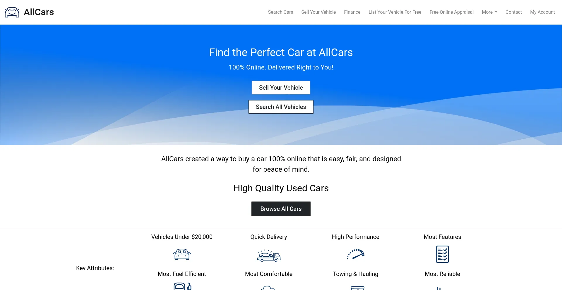 AllCars created a way to buy, sell or trade, and finance your car that is 100% online, convenient, fair and safe. Browse our quality vehicles. Get started now!
