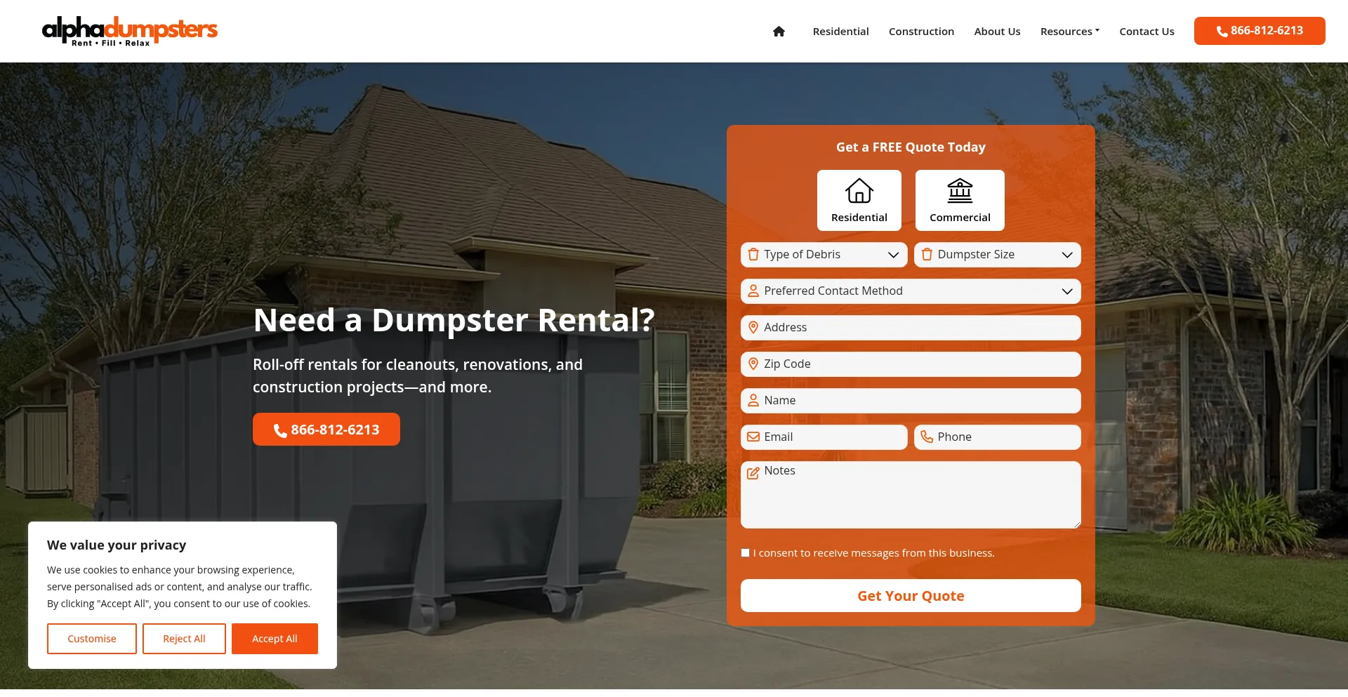 Alpha Dumpsters offers affordable dumpster rentals for residential, commercial, and construction needs. Call today for a free quote!