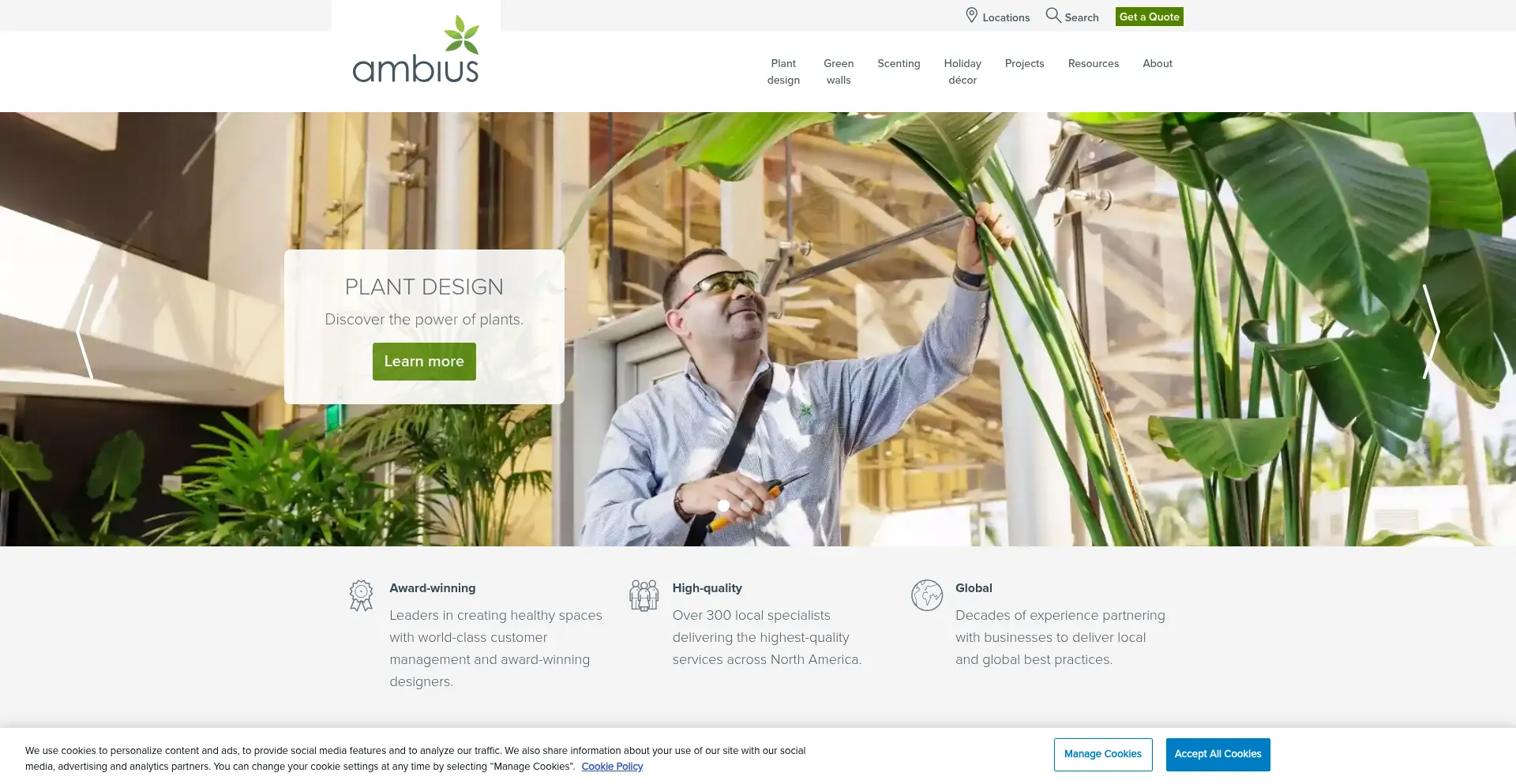 Ambius is the leader in designing nature-inspired spaces through expert plant design, green walls, ambient scenting, and holiday décor.