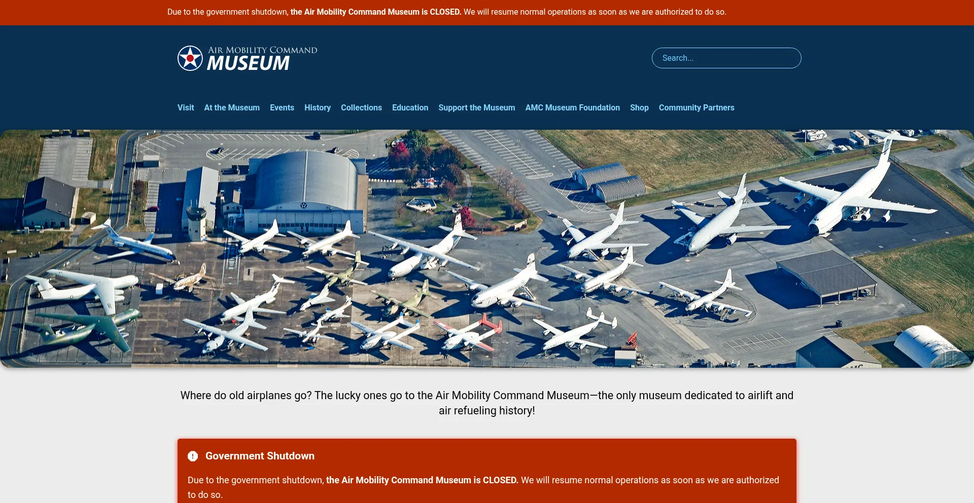 Due to the government shutdown, the Air Mobility Command Museum is CLOSED. We will resume normal operations as soon as we are authorized to do so.