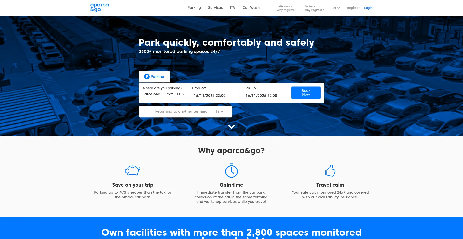 Book your arking at Madrid or Barcelona Airport. Atocha or Sants stations. Safe, monitored 24hx7 and competitively priced.