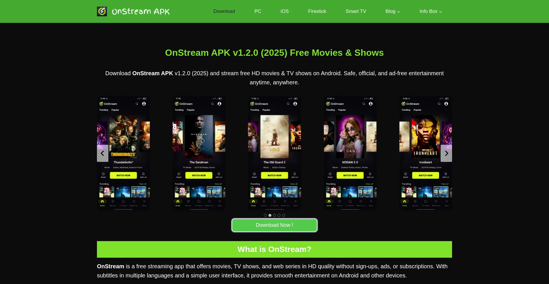 Download OnStream APK v1.2.0 (2025) and stream free HD movies & TV shows on Android. Safe, official, and ad-free entertainment anytime, anywhere.