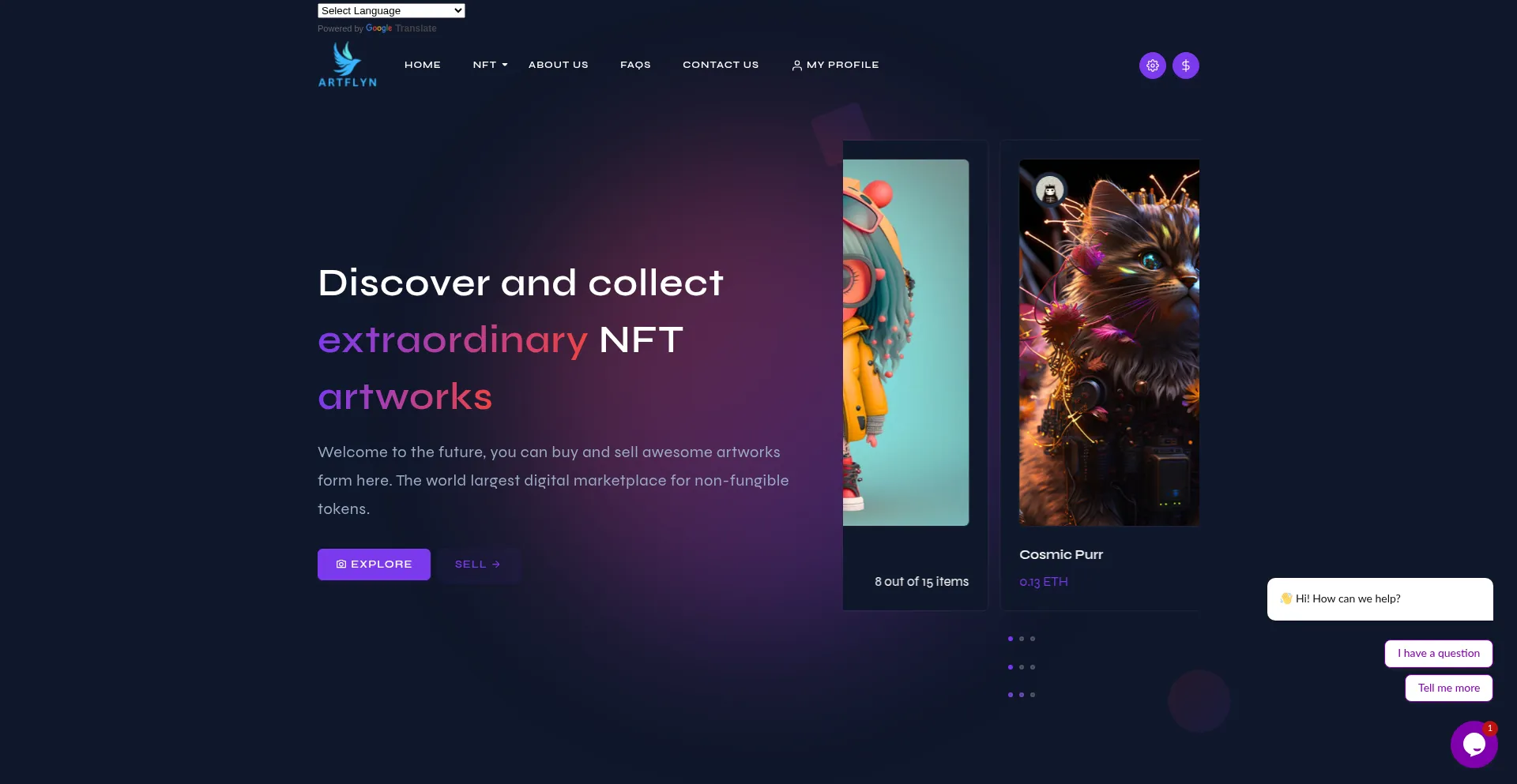 NFTs, Registration Form, Bootstrap Framework, Live Chat, Google Translate, Webpack Module Bundler