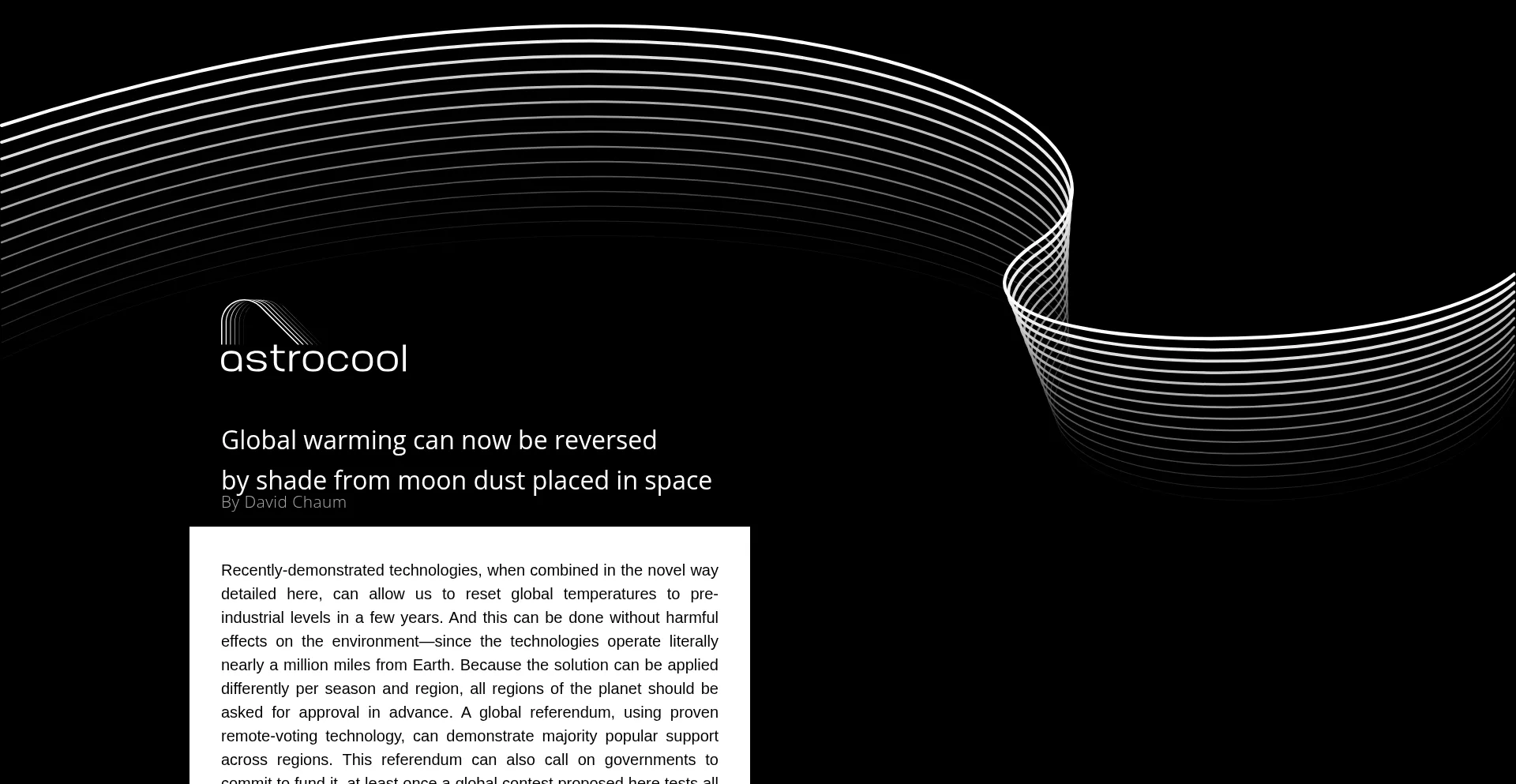 Recently-demonstrated technologies, when combined in the novel way detailed here, can allow us to reset global temperatures to pre-industrial levels in a few years.