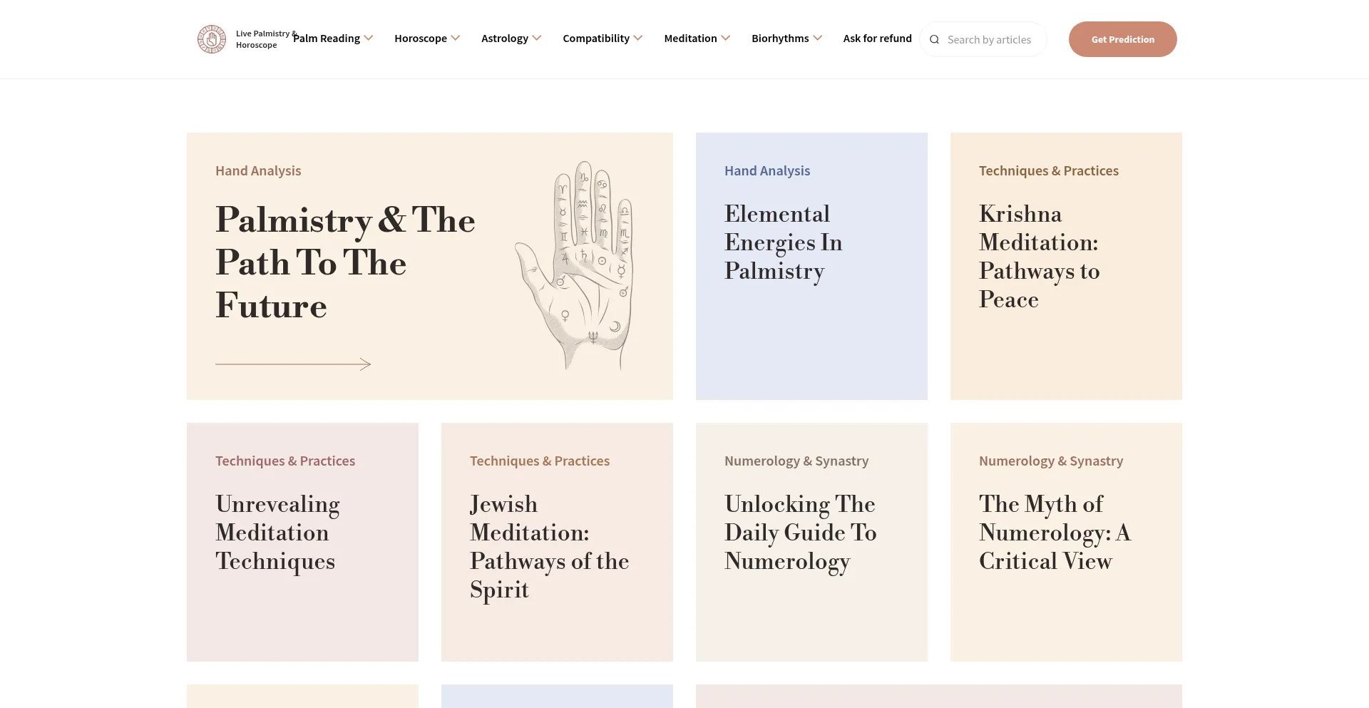 All interesting articles about palmistry, astrology, compatibility, meditation and biorhythms. Learn everything about yourself here or take a quiz for individual prediction