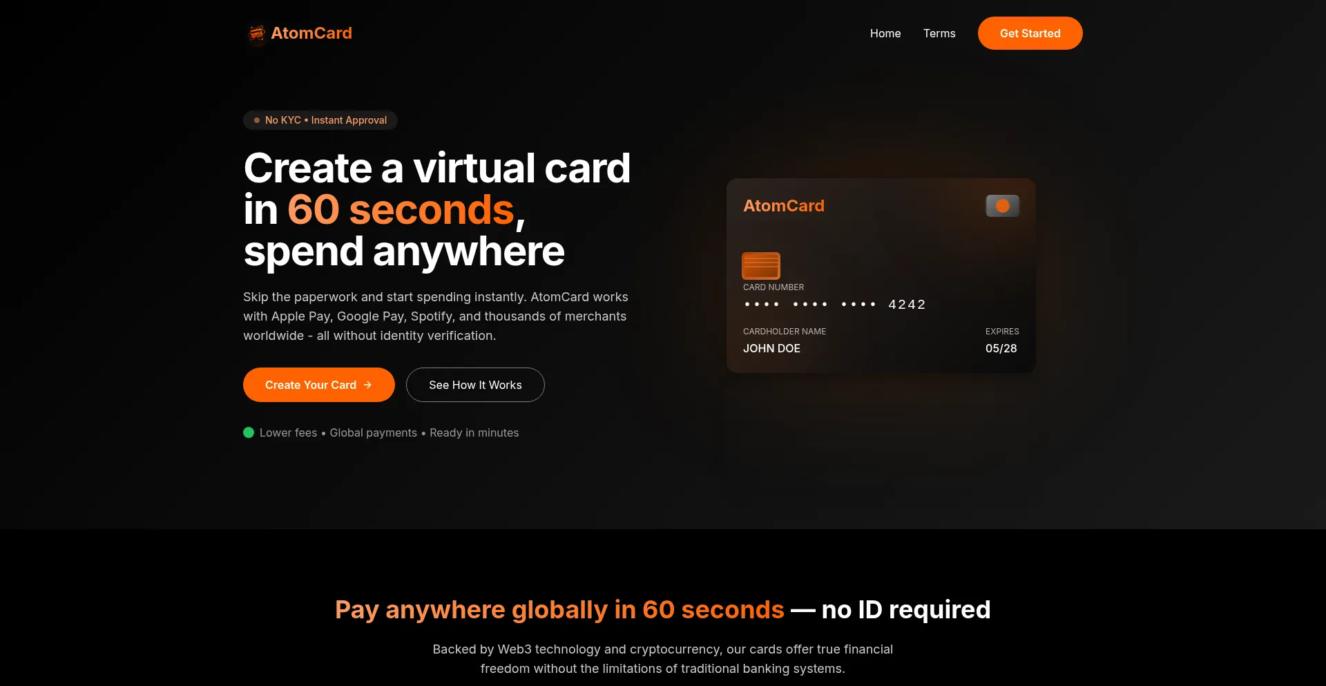 AtomCard | Web3 Virtual Cards Without KYC | Instant Global Payments