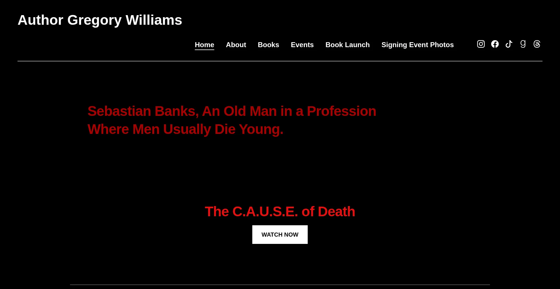 La présence de liens de médias sociaux sur le site web indique que authorgregwilliams.com maintient des comptes officiels sur les médias sociaux, ce qui est un signe positif de crédibilité et d'engagement.