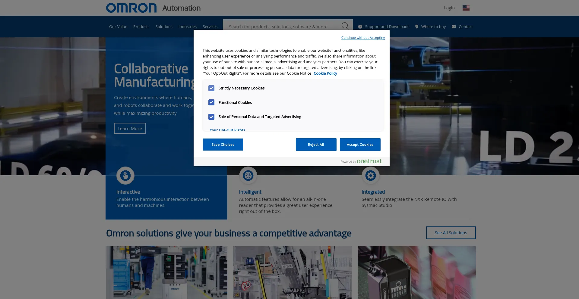 Le site web implémente des mécanismes de consentement aux cookies en conformité avec les réglementations de confidentialité telles que RGPD ou CCPA. Cela démontre que automation.omron.com adhÚre aux standards de protection des données et fournit aux utilisateurs un contrÎle sur les pratiques de collecte de données personnelles.