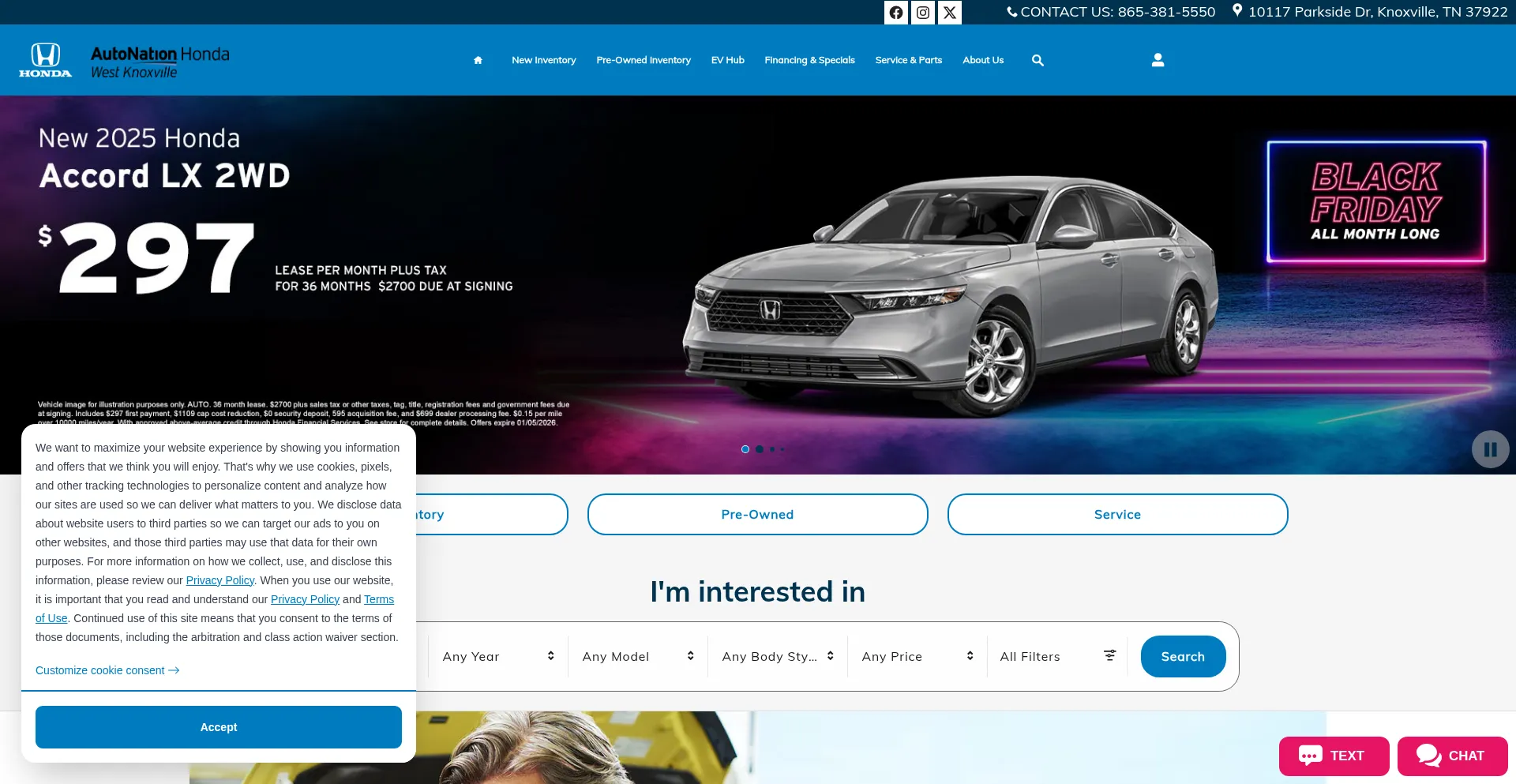 AutoNation Honda West Knoxville is your local Knoxville area Honda dealer. Browse our new and pre-owned inventory, schedule service, and more!