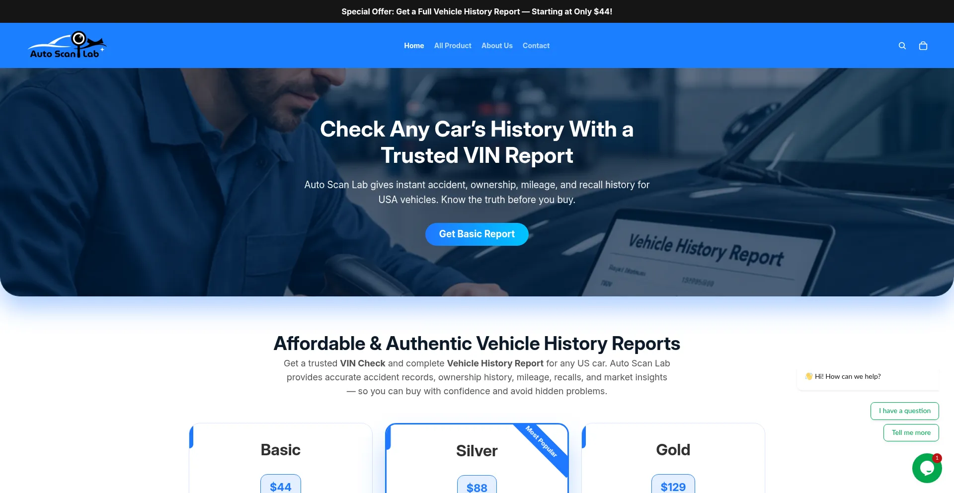 Special Offer: Get a Full Vehicle History Report — Starting at Only $44!