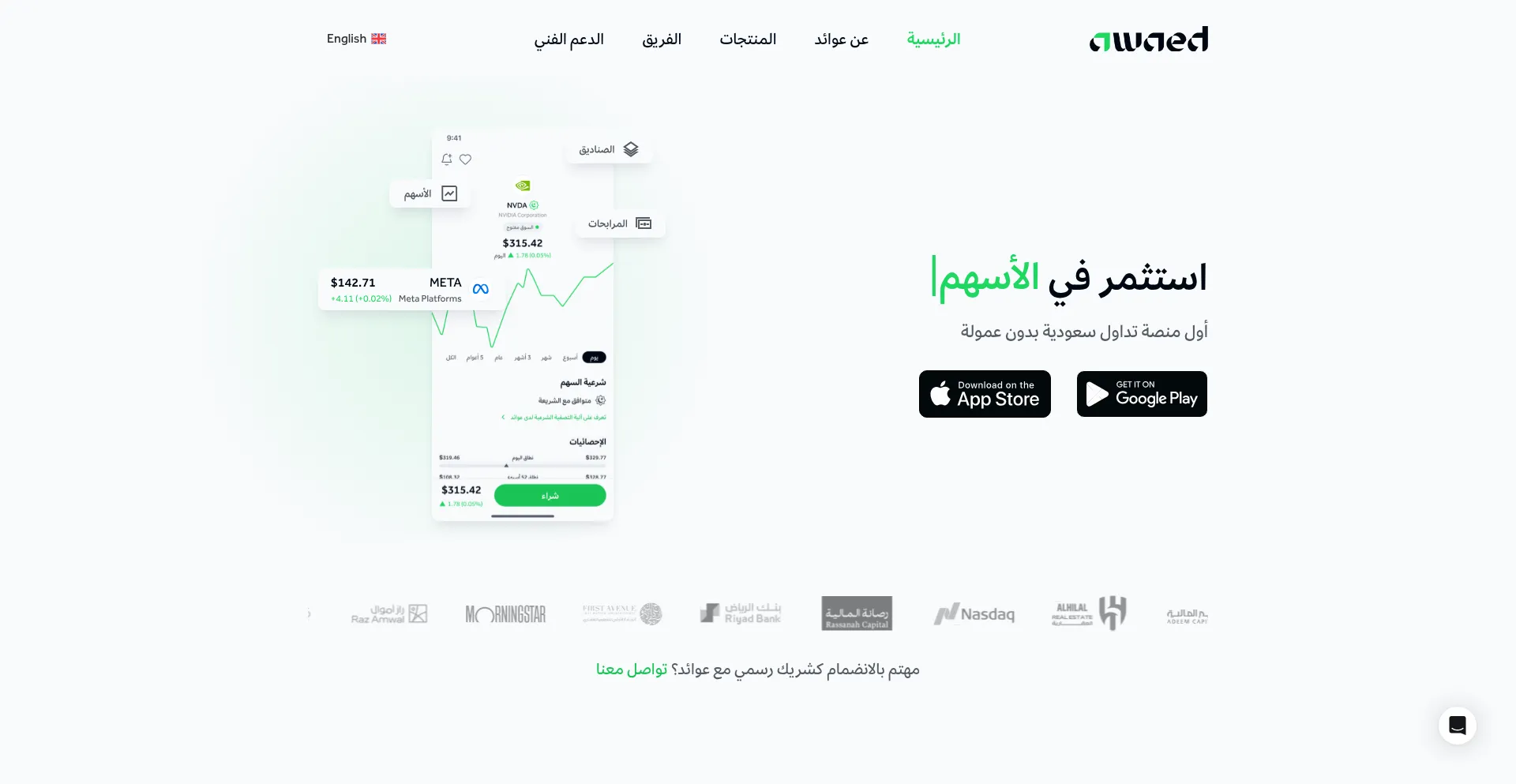 awaed.co dispose d'une application mobile iOS disponible, indiquant une accessibilité multiplateforme pour les utilisateurs d'appareils Apple.