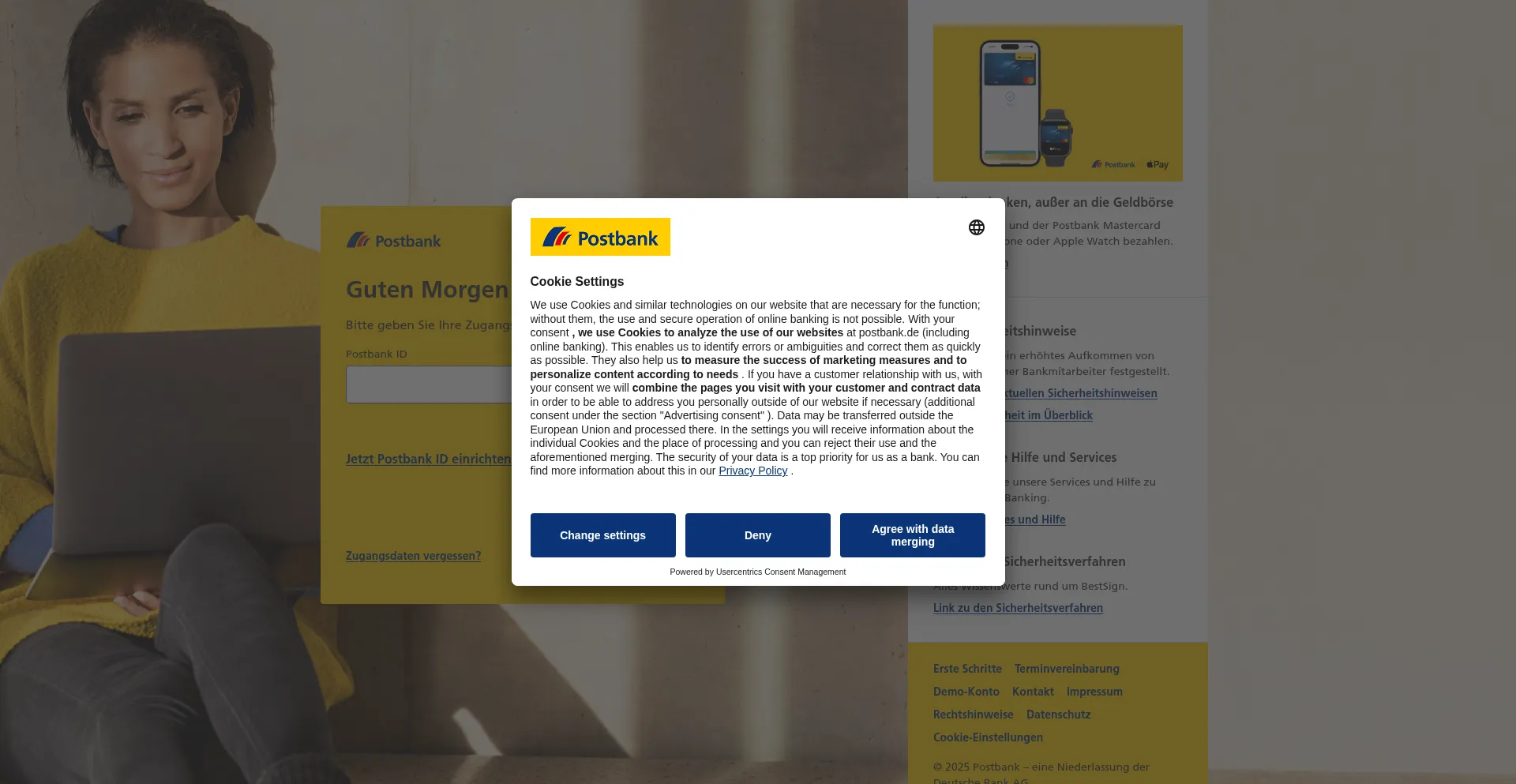 www.postbank.de app.usercentrics.eu api.usercentrics.eu uct.service.usercentrics.eu bam.eu01.nr-data.net banking.postbank.de api.olb.postbank.de consent-api.service.consent.usercentrics.eu aggregator.service.usercentrics.eu