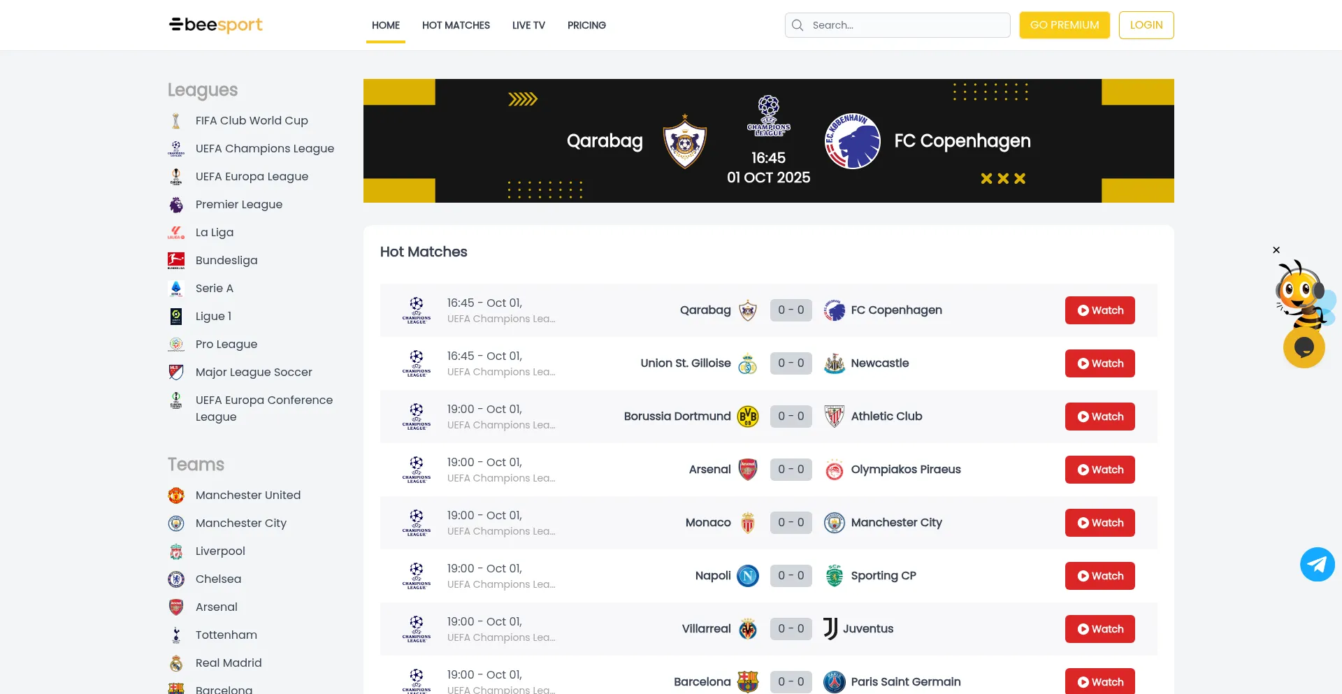Beesport - live soccer scores, tennis, basketball and 100+ football leagues and tournaments