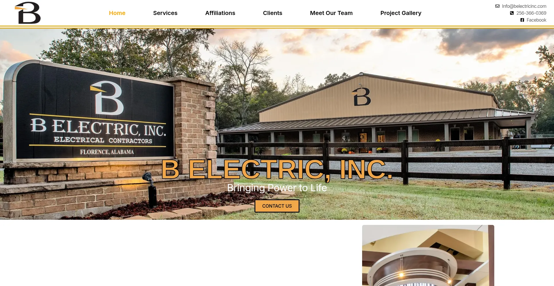 CONTACT US Bringing Power to Life B Electric, Inc. Our Values Welcome to B Electric, Inc. We recognize that repeat business comes from the quality of work that our electricians ...