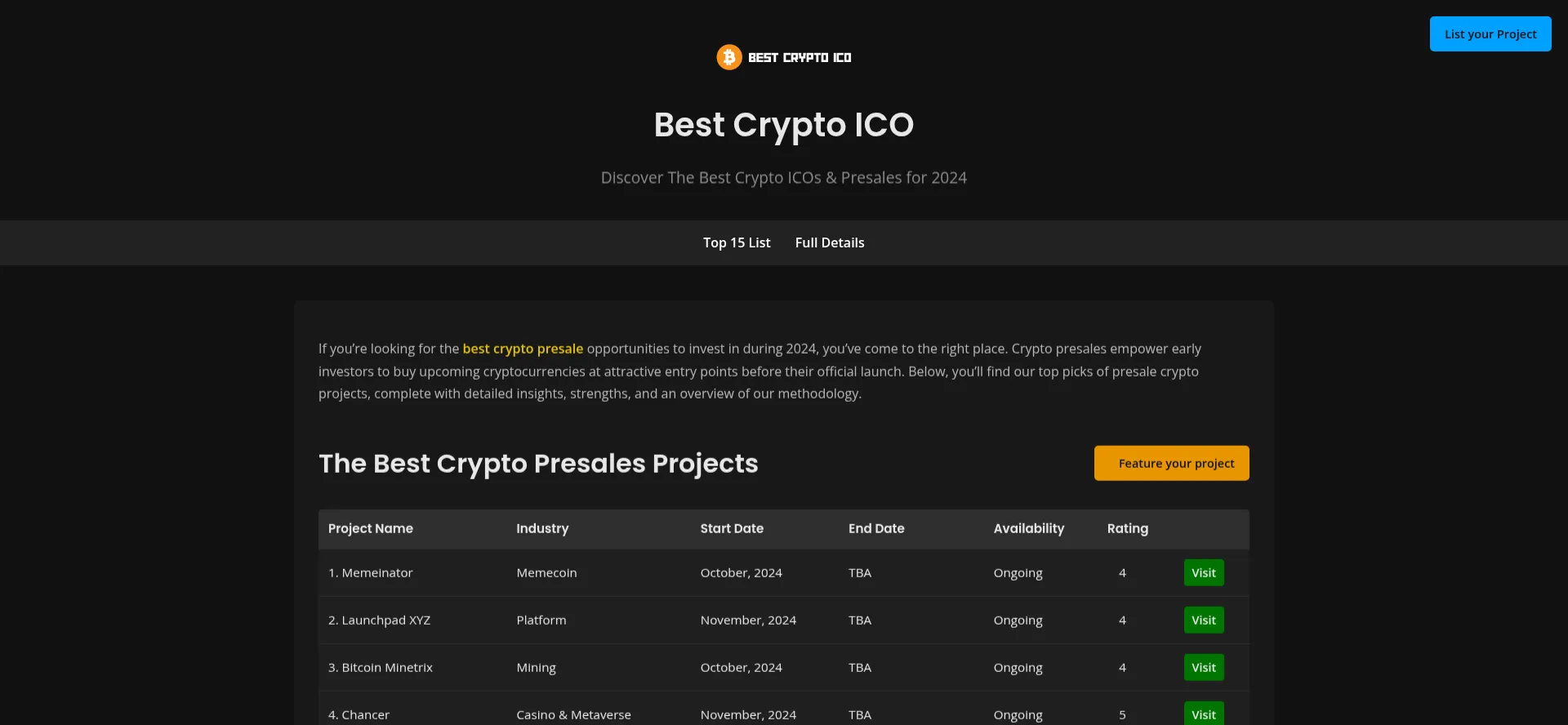 Discover the Best Crypto ICOs and Best Crypto Presales in 2024. Stay ahead with our carefully curated list of top 15 upcoming and trending ICO projects, detailed reviews, and in...