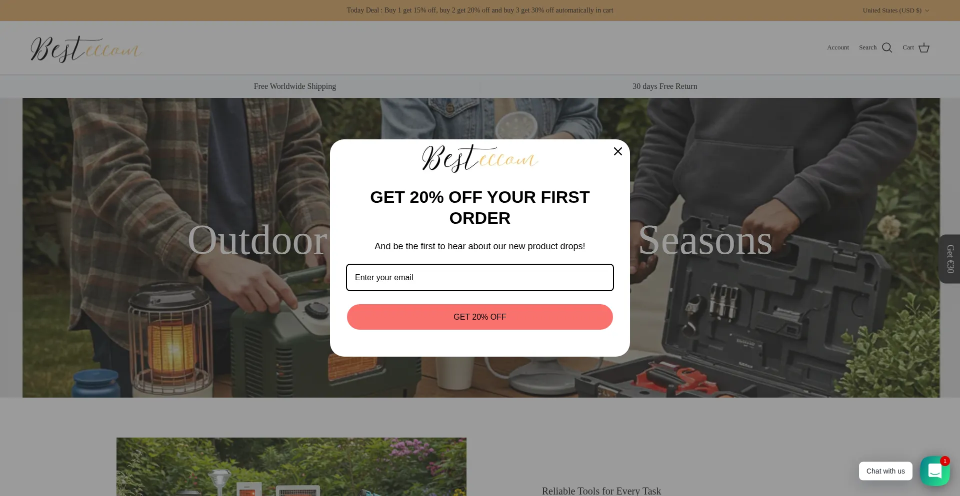 Shopping, Reliable Payment Method, Deals, Uses Free eCommerce Engine, Shopify Platform, Facebook Integration, AI-generated Text, Young Domain