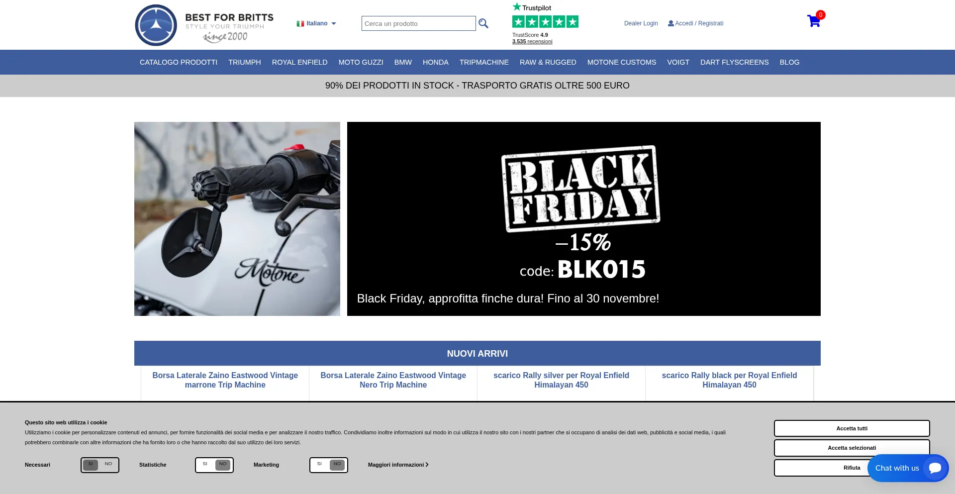 Il primo sito italiano di vendita on-line dedicato agli accessori Triumph, accessori Royal Enfield, Moto Guzzi, BMW, vasta selezione disponibile in stock, spedizione veloce e si...