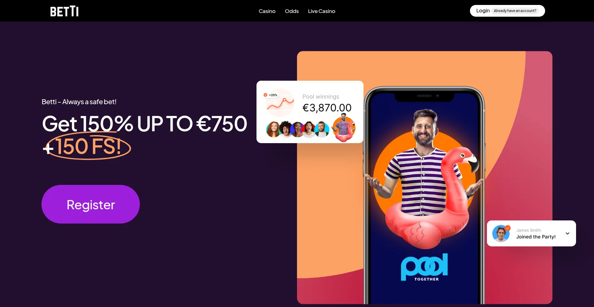 Betti is a real money casino operator with thrilling games, and Betti Casino offers an exciting sportsbook and live casino experience!