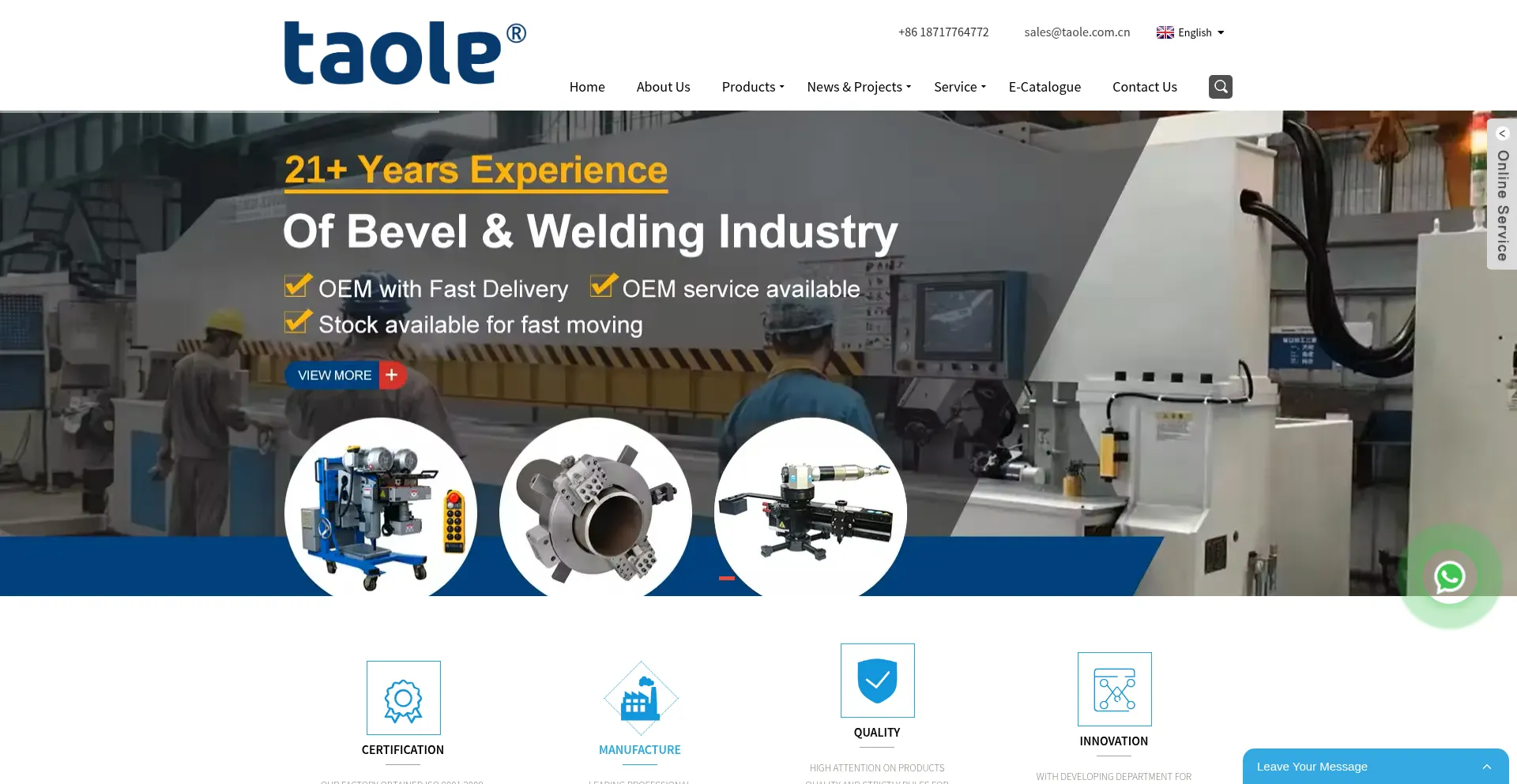 Shanghai Taole Machine Co.,Ltd is a Leading Manufacturer of weld preparation machines like Plate Bevelling Machine, Pipe Bevelling Machine, Pipe Cutting,
