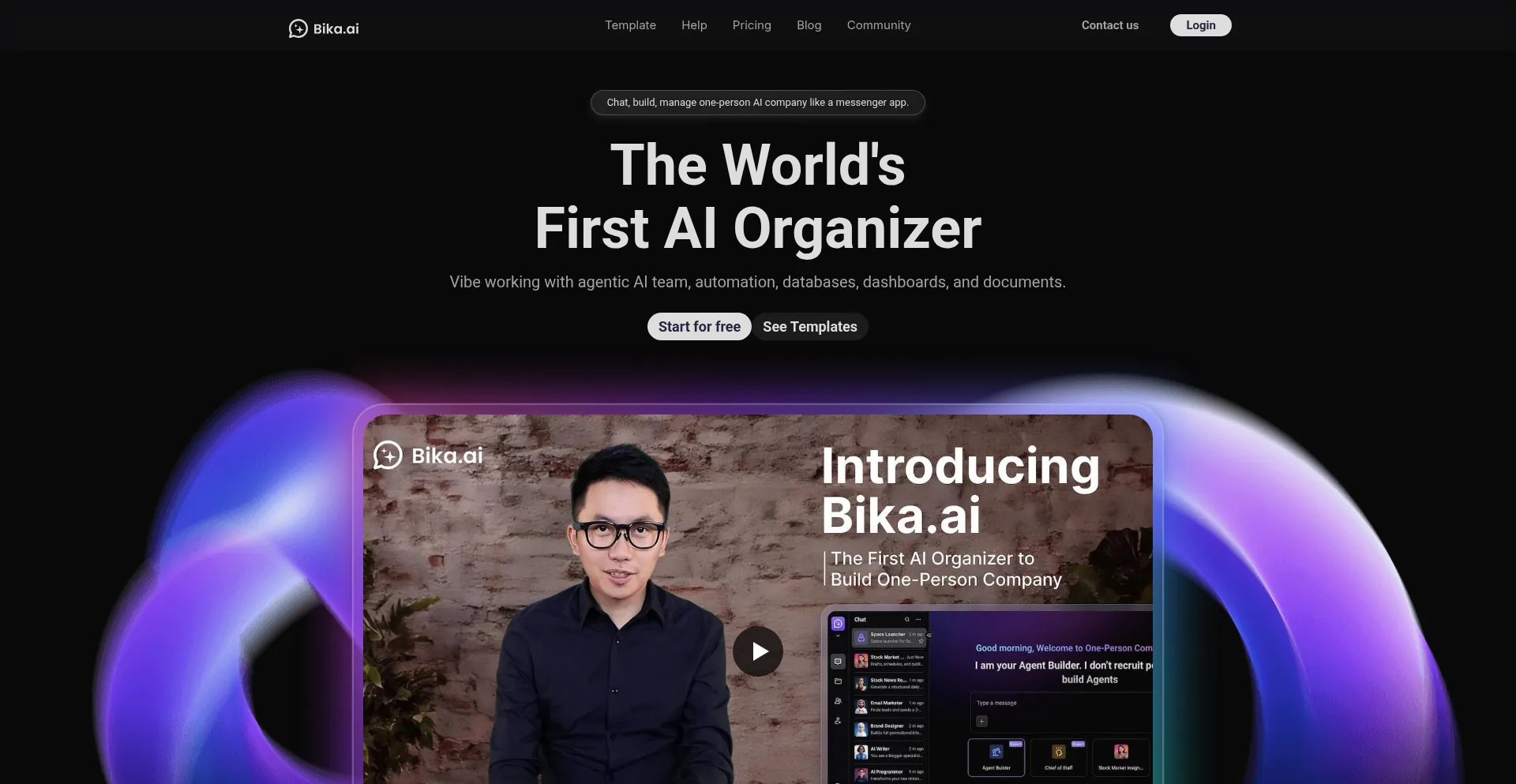 Bika.ai, the first AI organizer for vibe working. Build your own agentic AI team combines AI agents, automation, databases, dashboards, and documents.
