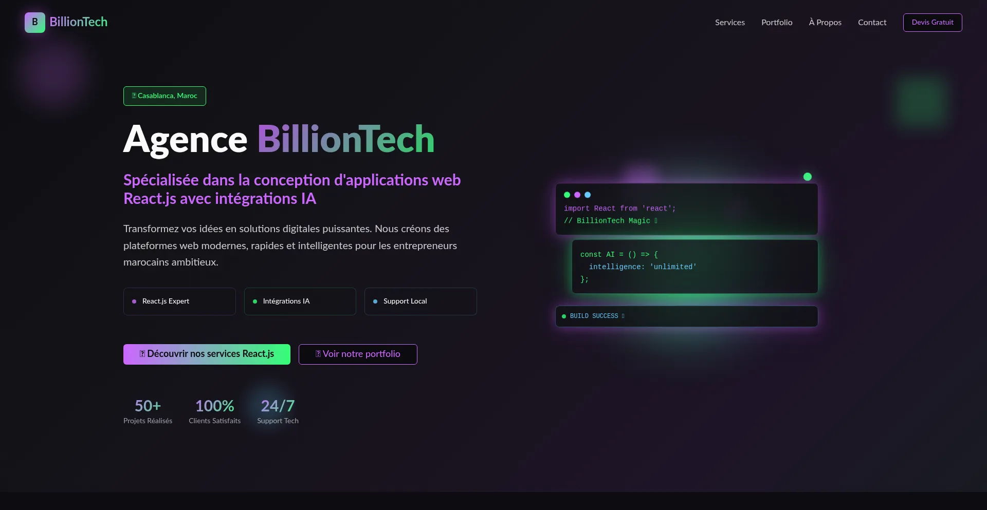 BillionTech Agency - Agence Développement Web React.js avec IA | Casablanca, Maroc