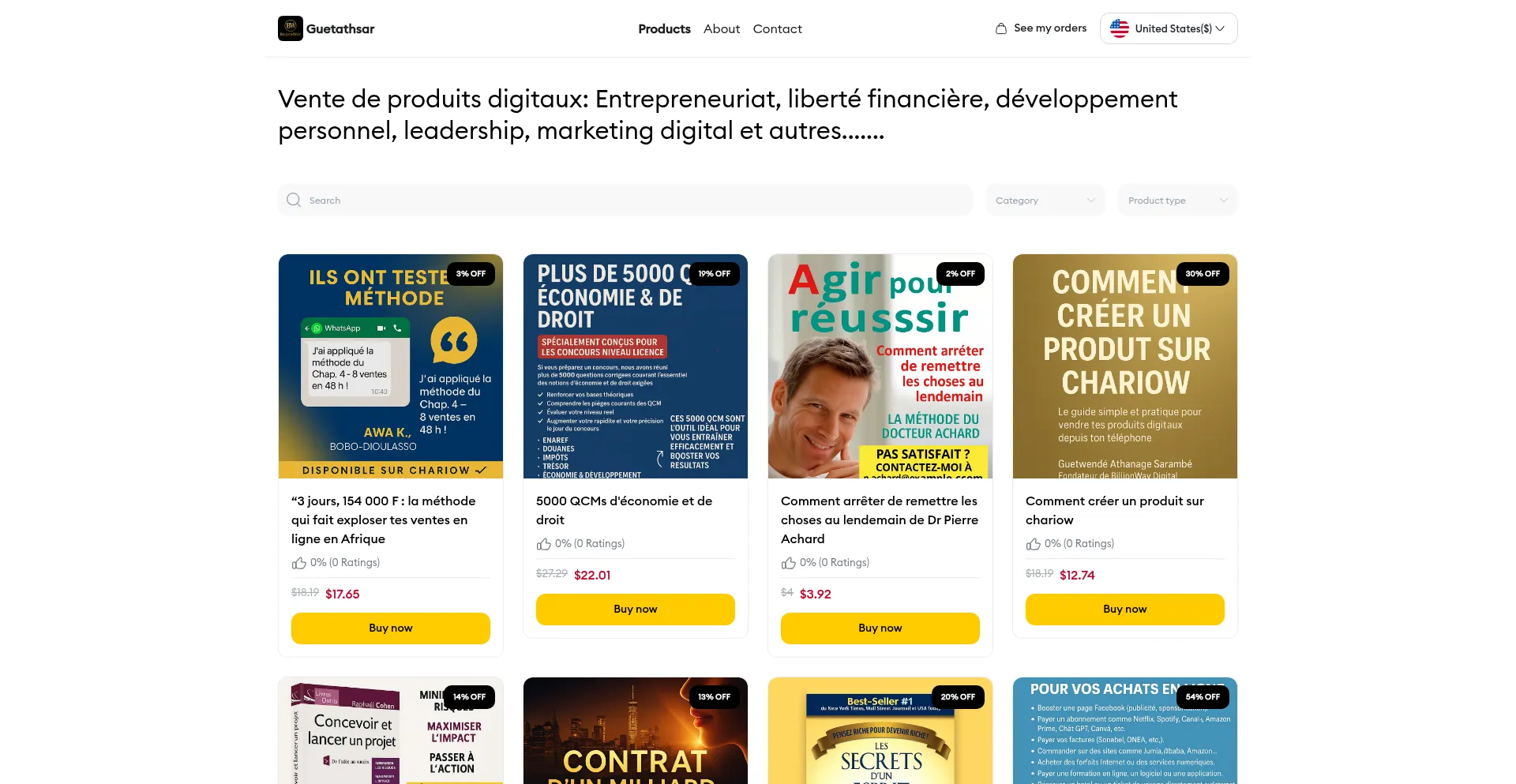 Vente de produits digitaux: Entrepreneuriat, liberté financiÚre, développement personnel, leadership, marketing digital et autres.......