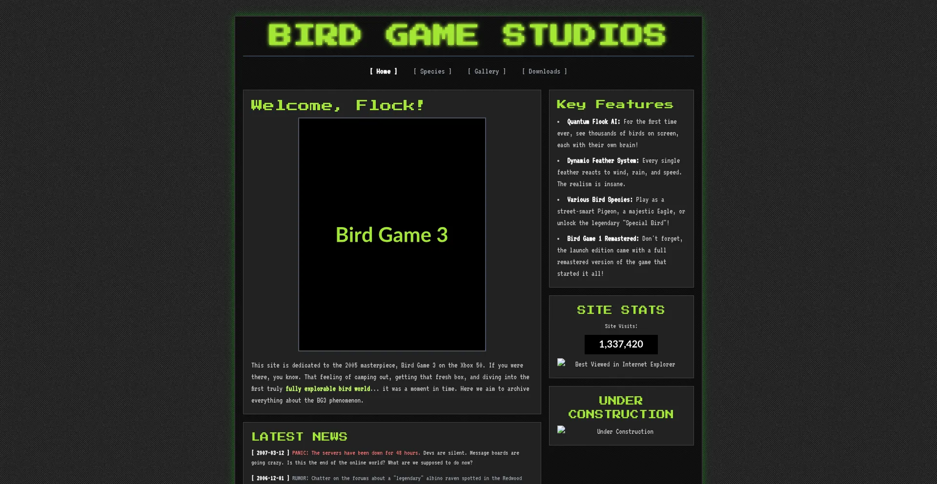 This site is dedicated to the 2005 masterpiece, Bird Game 3 on the Xbox 50.
