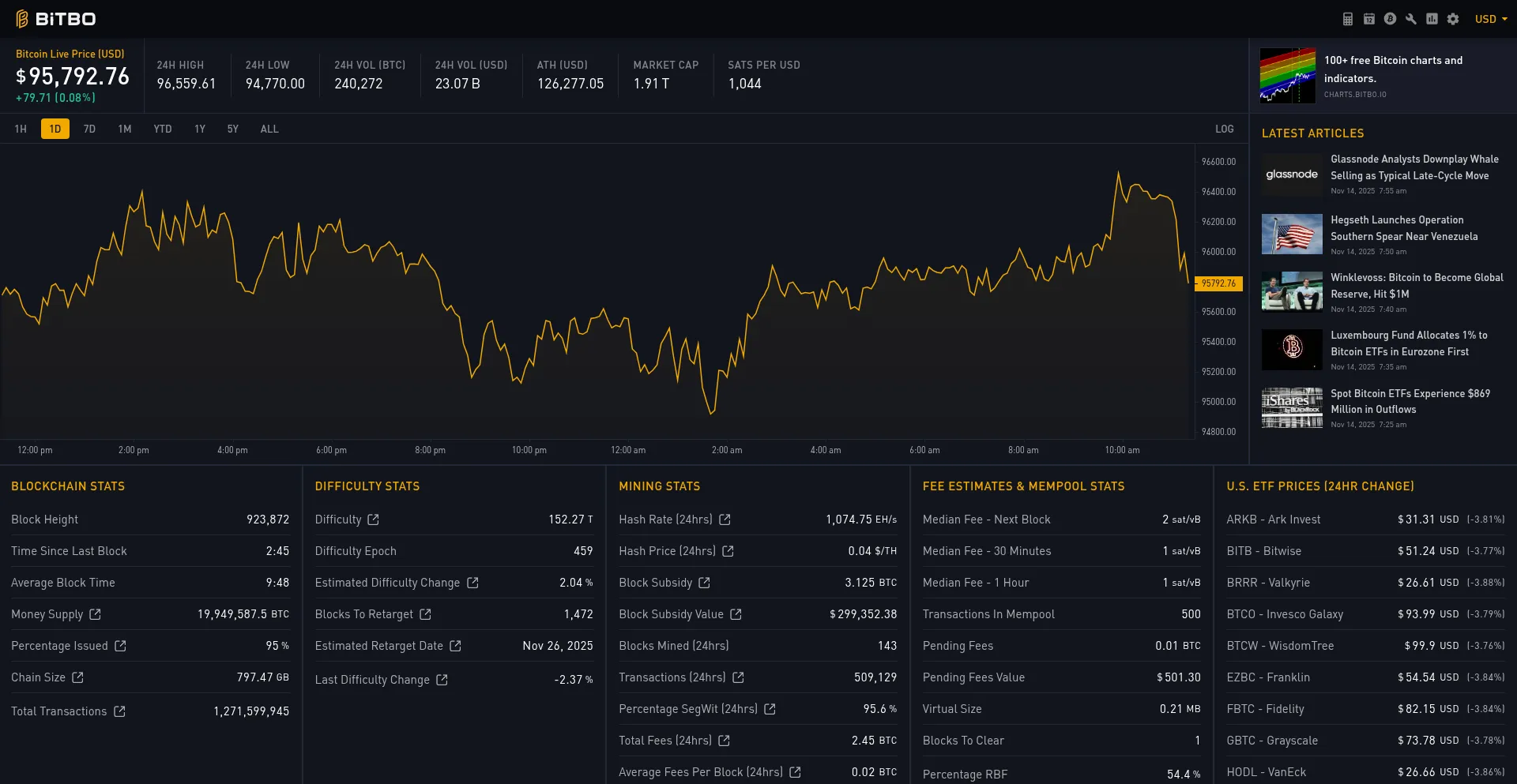 $95,792.76 | Bitbo | Live Bitcoin Price & Dashboard