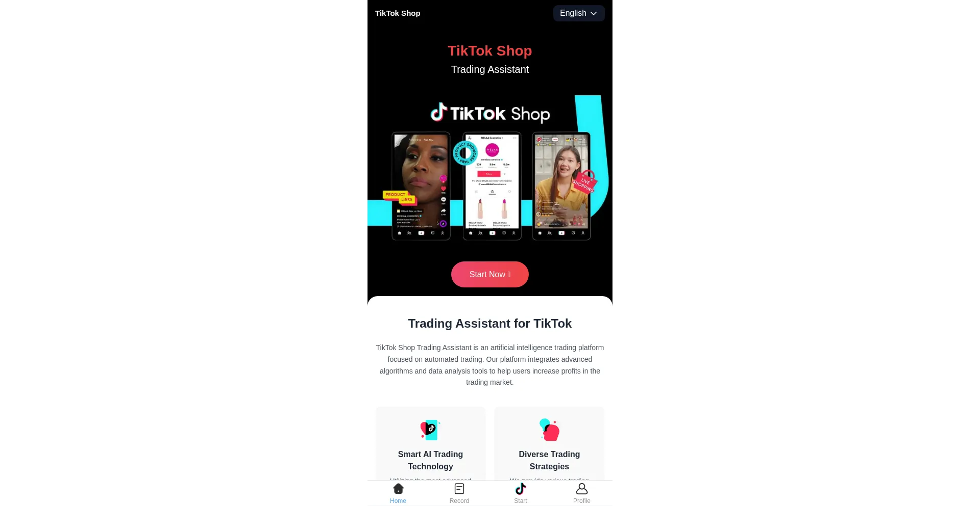 TikTok Shop Trading Assistant is an artificial intelligence trading platform focused on automated trading.
