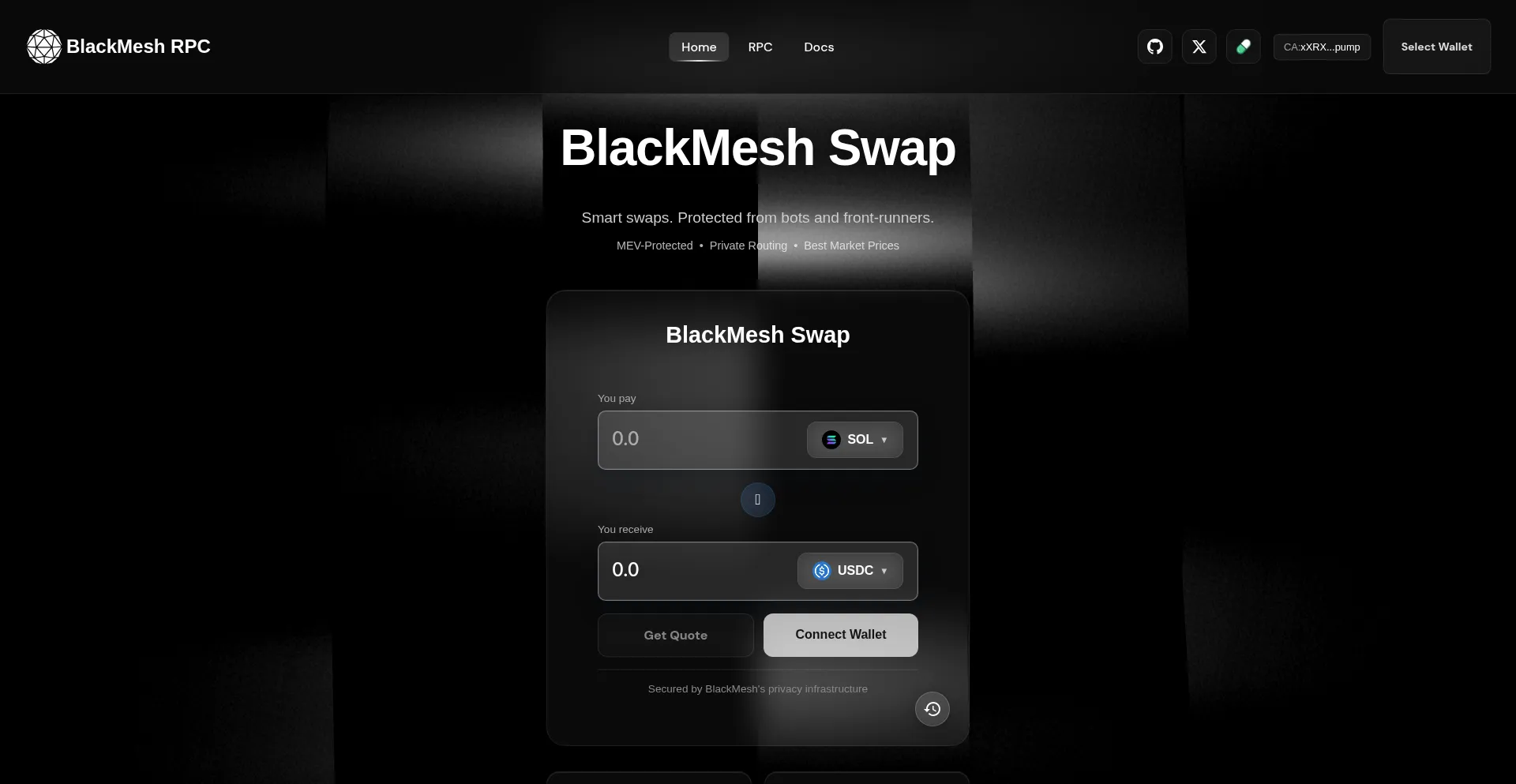 github.com blackmesh.xyz pump.fun fonts.googleapis.com x.com dexscreener.com datapi.jup.ag raw.githubusercontent.com fonts.gstatic.com www.blackmesh.xyz