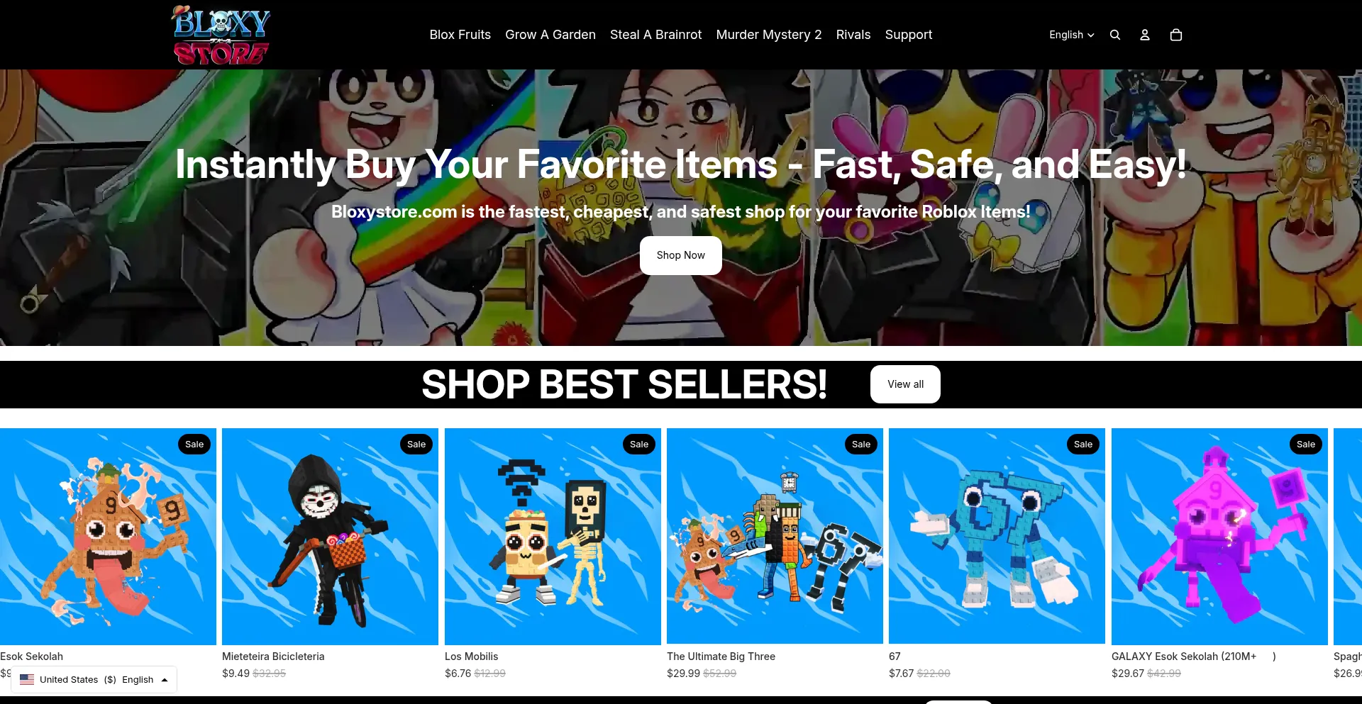 Shop Bloxystore today to save up to 50% On Permanent Fruits, Gamepasses, Accounts and more!